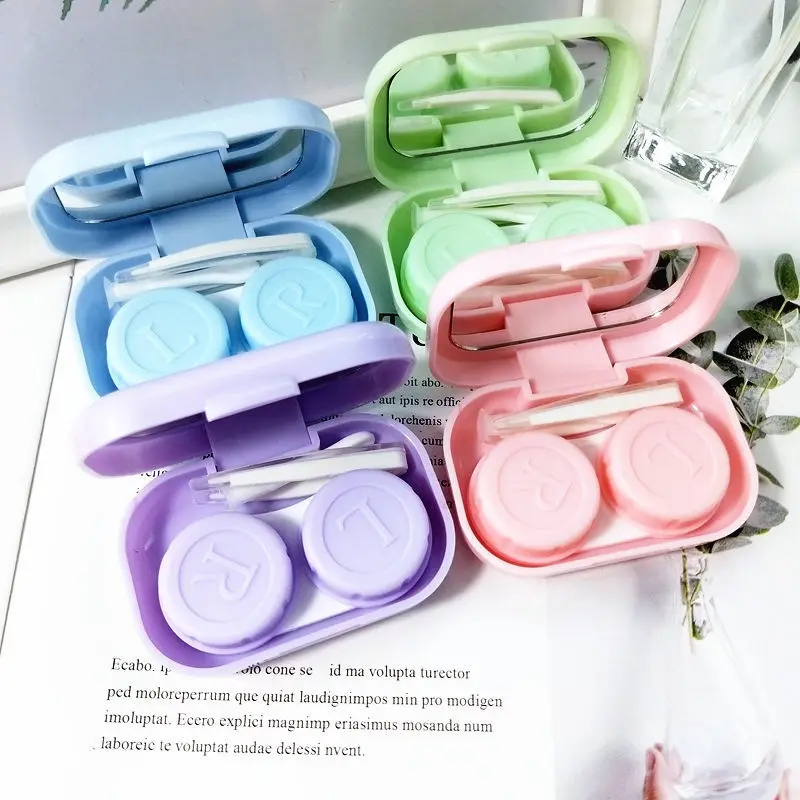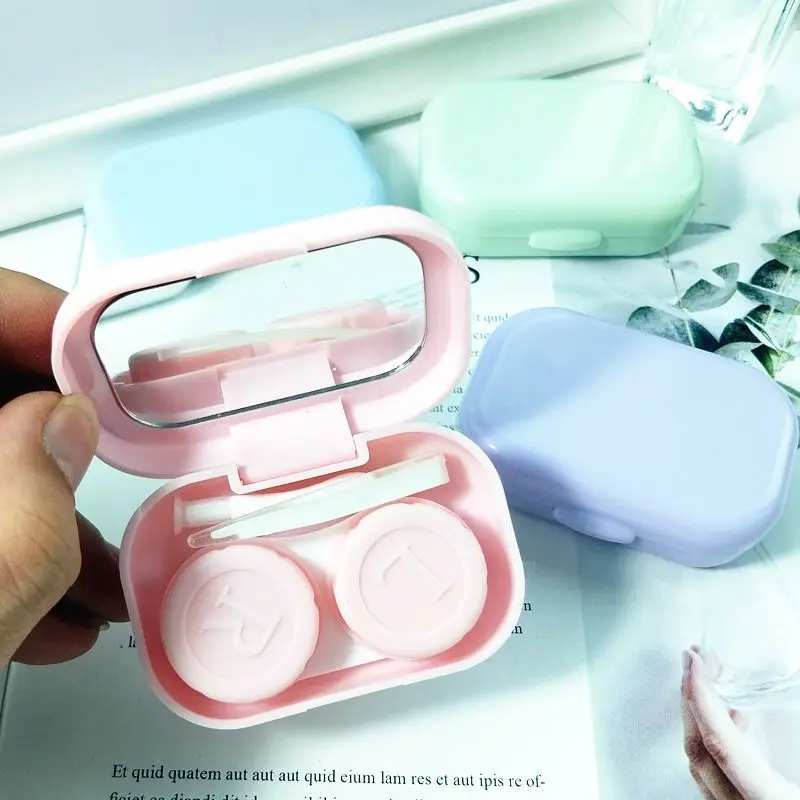 Qfdian 2 Pcs Contact Lens Cases with Mirror Unisex Travel Easy Carry Colored Container Lenses Box