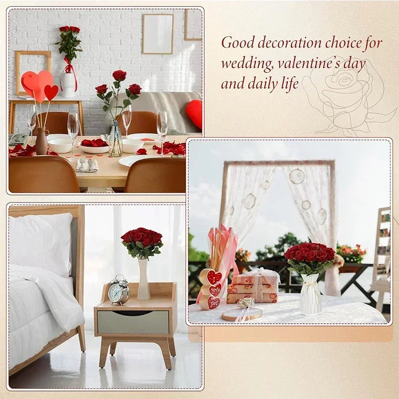 【Best Popular Decoration】:This velet roses are perfect for LOVE atmosphere(Wedding, Party, Birthday, Anniversary, Valentine's Day); home decoration(Home, Hotel, Office, Table,Vase Flower); DIY flower arrangement(Bridal Bouquet, Wedding Arch/Corsage, Gift Bouquet).This fake roses look beautiful and lovely, just like real roses.