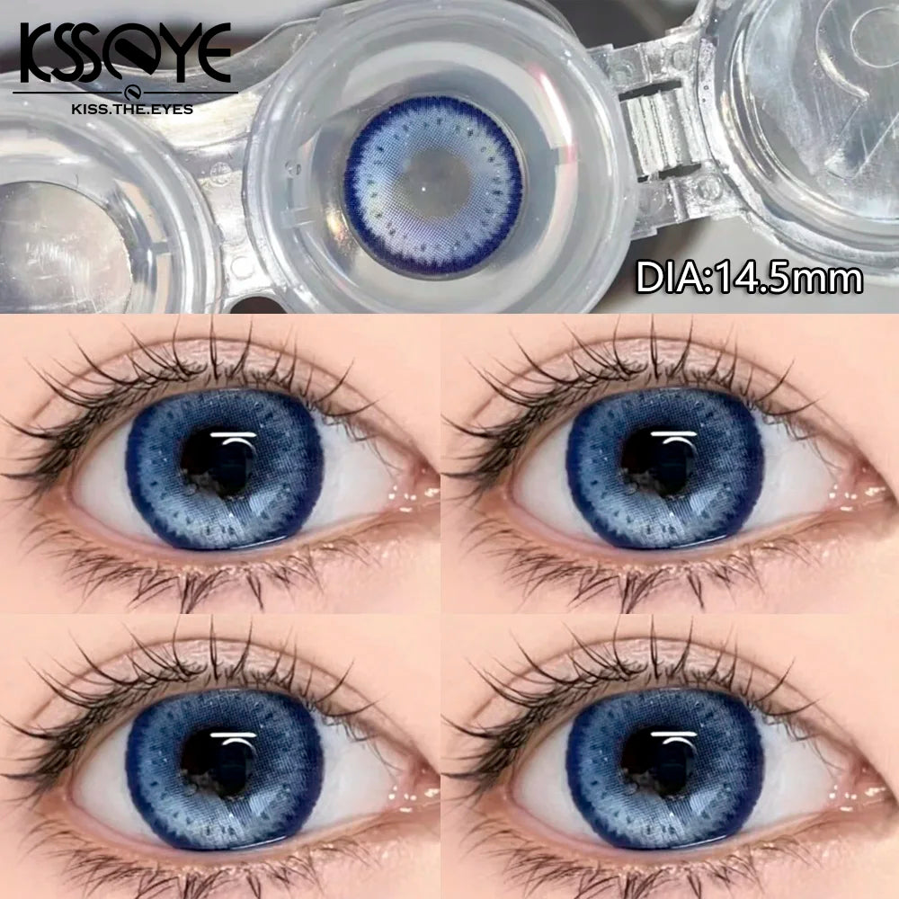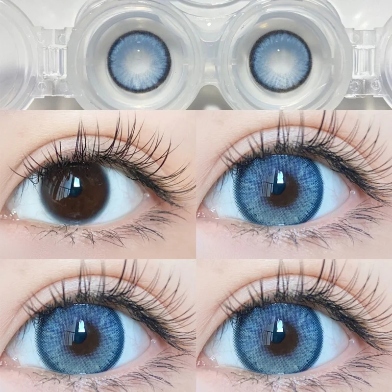Qfdian 1 Pair New Color Contact Lenses with Myopia Degree High Quality Blue Eyes Colored Lens Makeup Beautiful Pupil Yearly Use