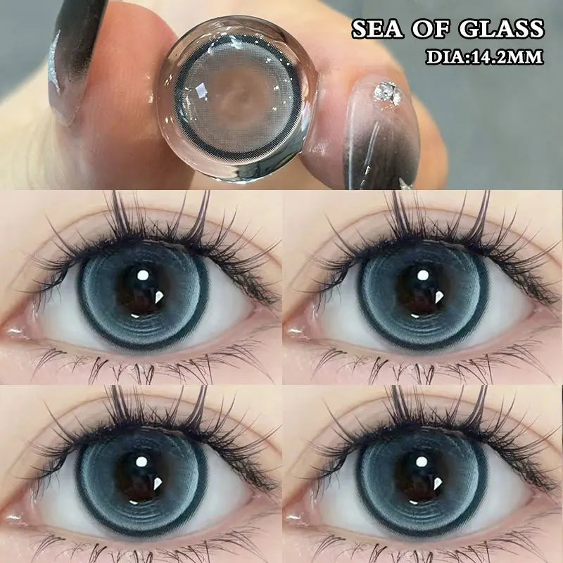 Qfdian 2Pcs Korean Colored Contact Lenses with Myopia Degree Grade 0.00- 8.00 Blue Green Beauty Pupilentes Soft Lens