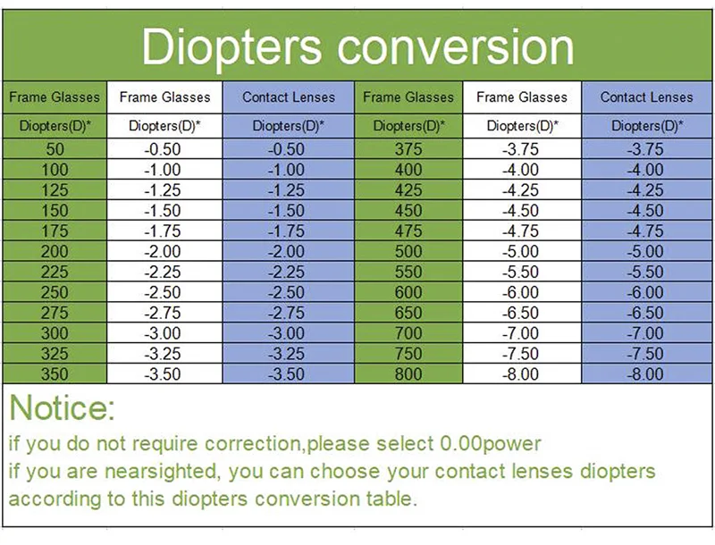 If you need 2 different lenses degrees for the eyes, please leave the degrees you need in the remarks when you make the order, or leave us a message with the Order No.