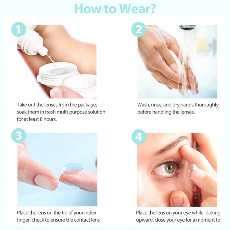 ▲Soak the contact lens with care solution for more than 8 hours (the liquid in the package is not care solution, but the normal saline solution)