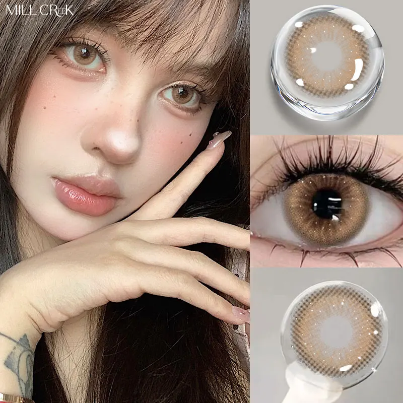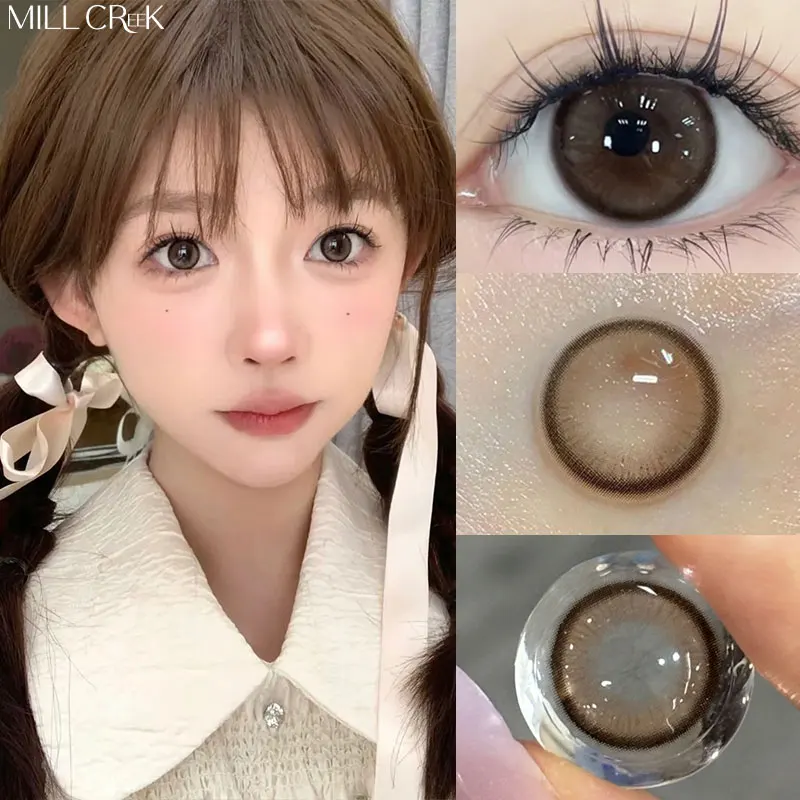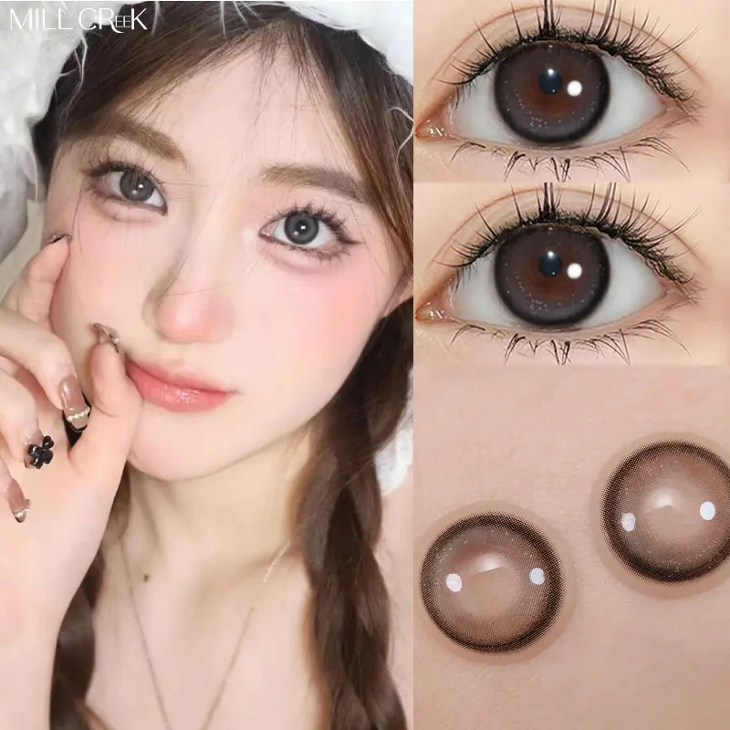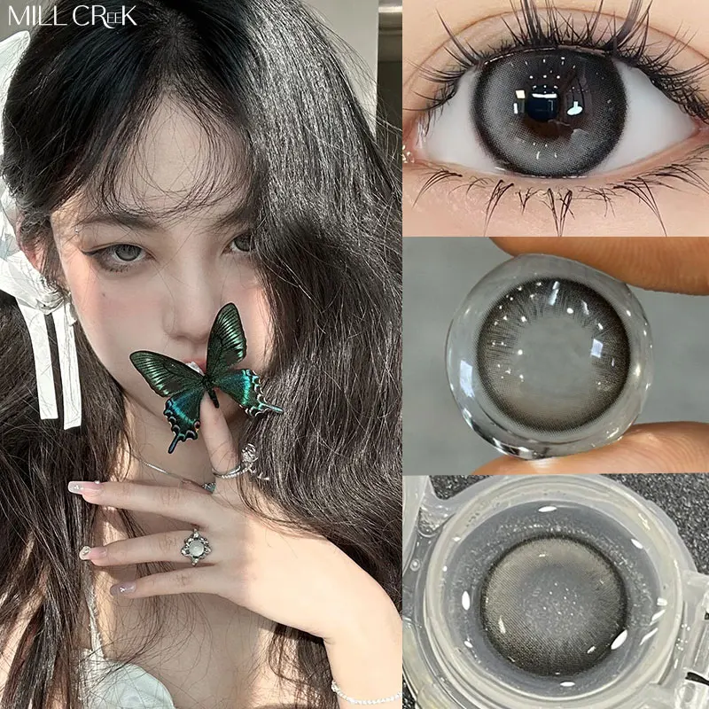 Qfdian 2Pcs Natural Gray Colored Contact Lenses Yearly Brown Makeup Pupils Lens for Eyes High Quality Soft Contact