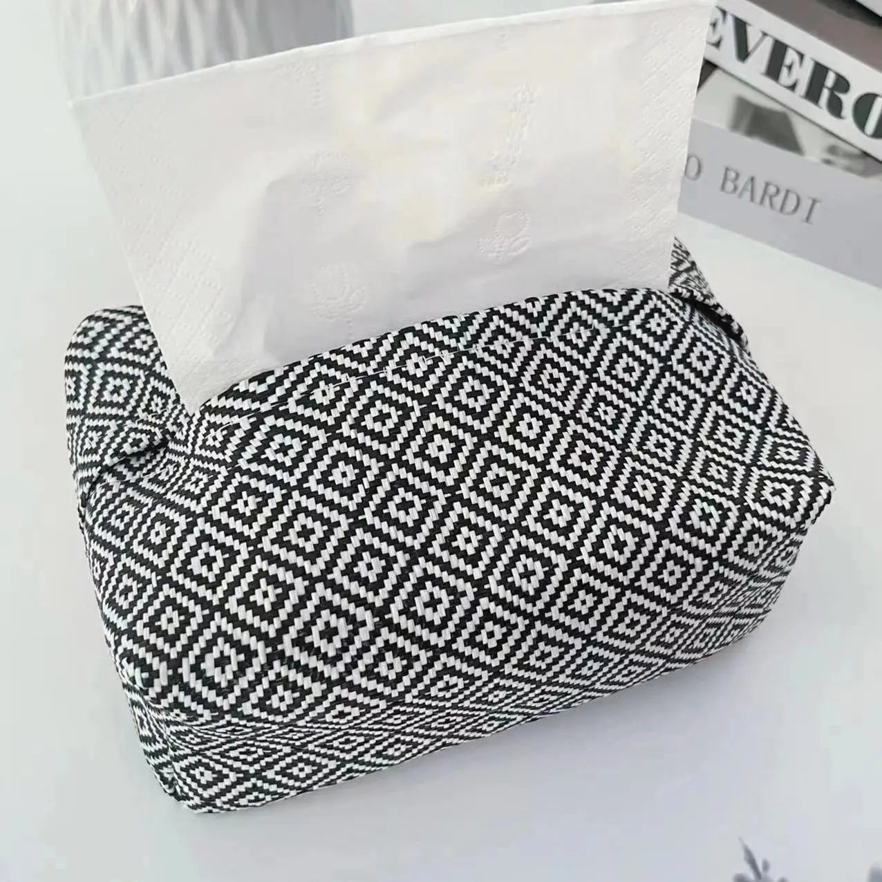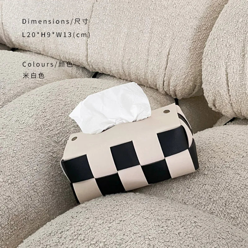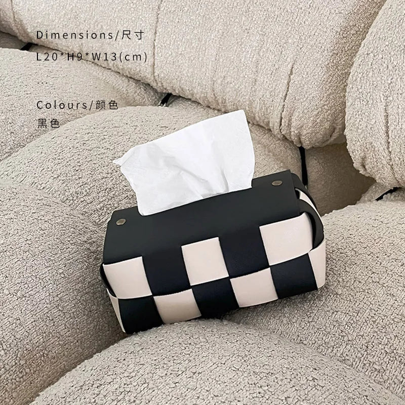 Qfdian Checkerboard Woven Tissue Box PU Leather Napkin Case Living Room Office Desktop Home Decoration Creative Paper Towel Cover