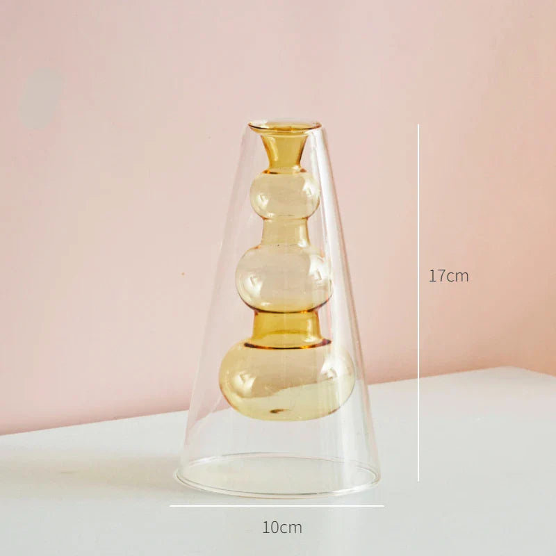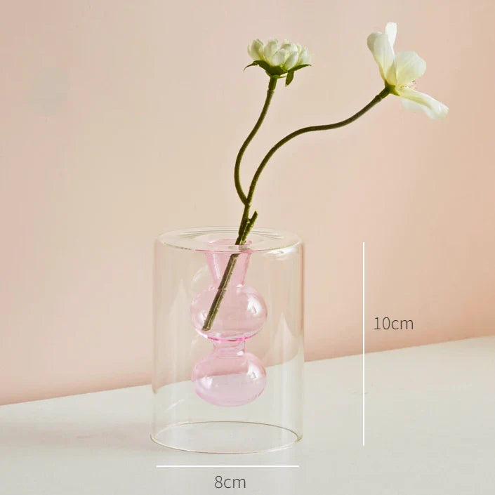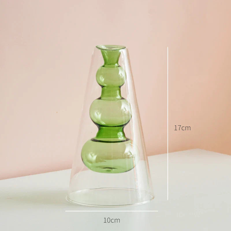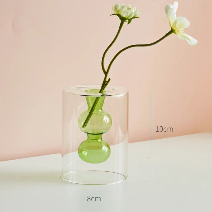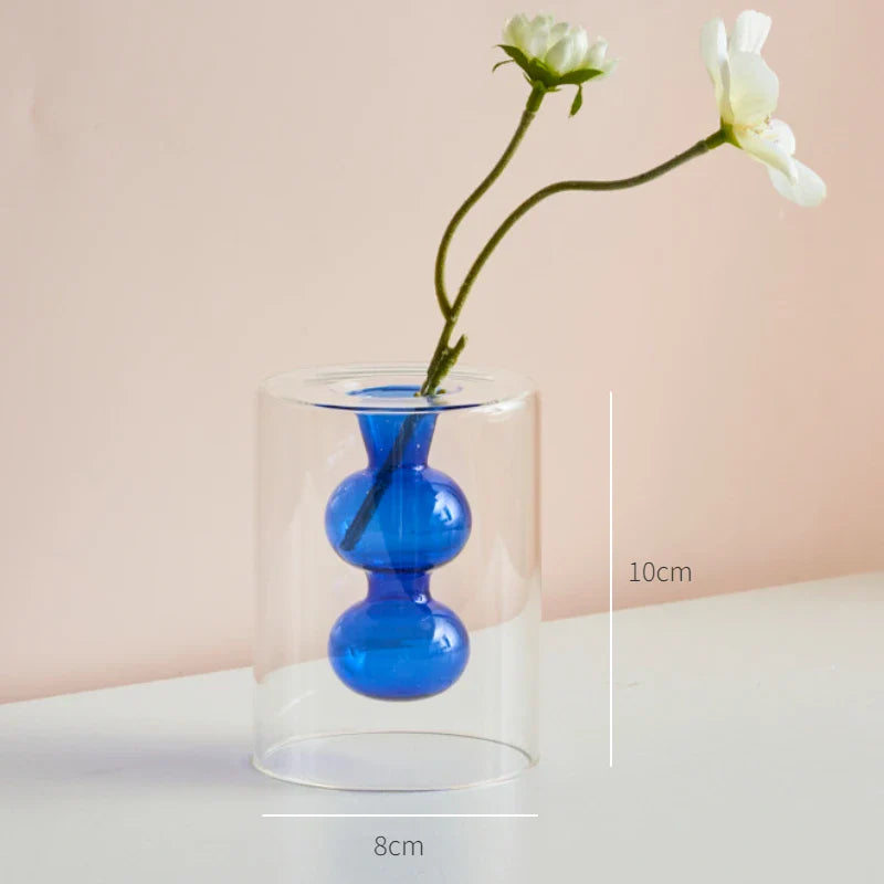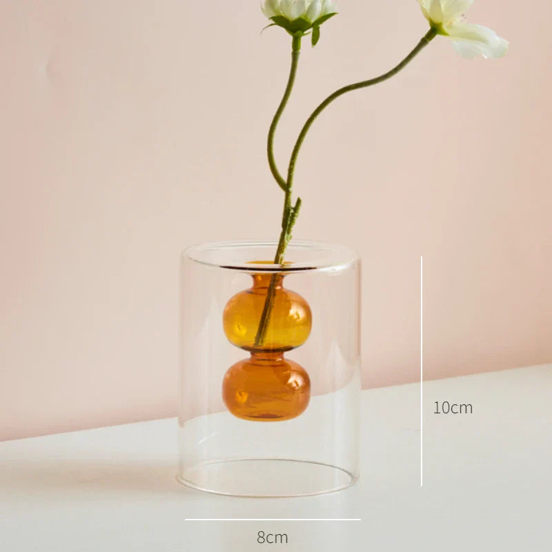 Qfdian Nordic Modern Double Wall Vase Creative Hydroponic Transparent Glass Vase Living Room Desktop Decor Art Ornament Home Decor