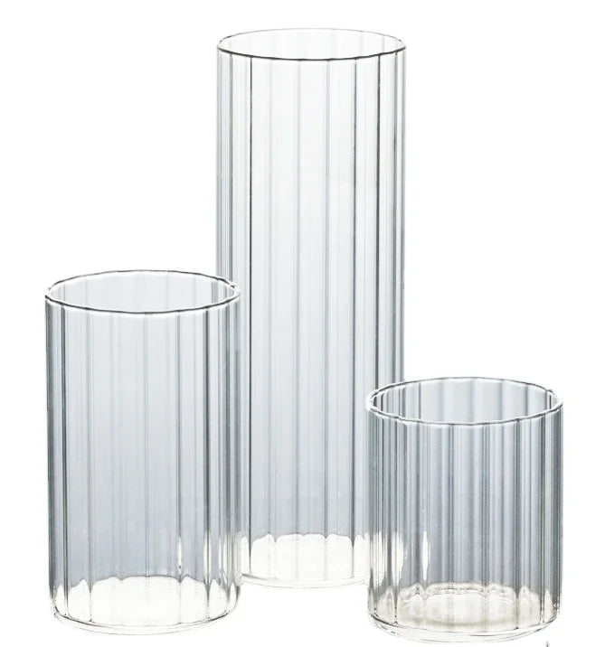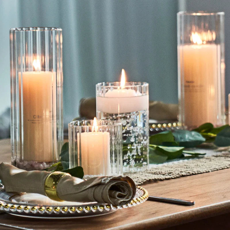 Qfdian Ribbed Glass Hurricane Candle Holders Home Decor Pillar Candles Glass Vase Floating Candle Wedding Ornaments