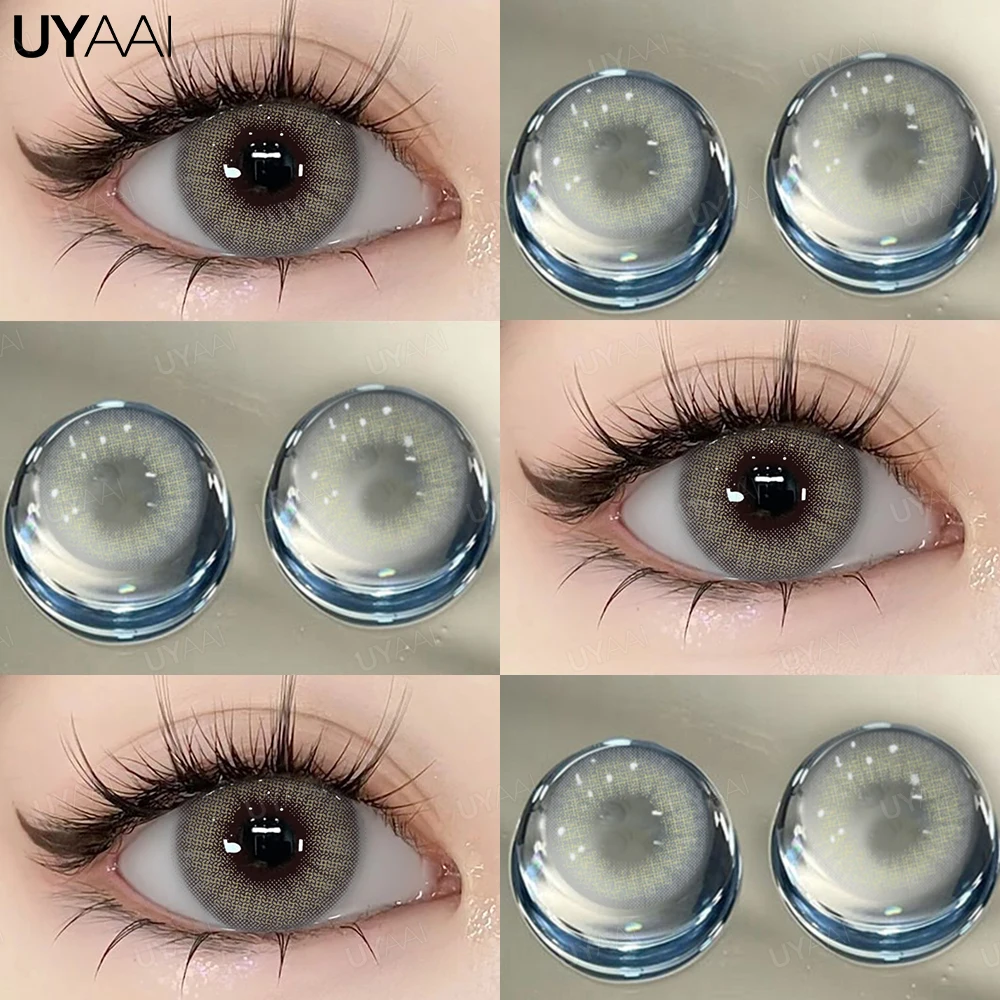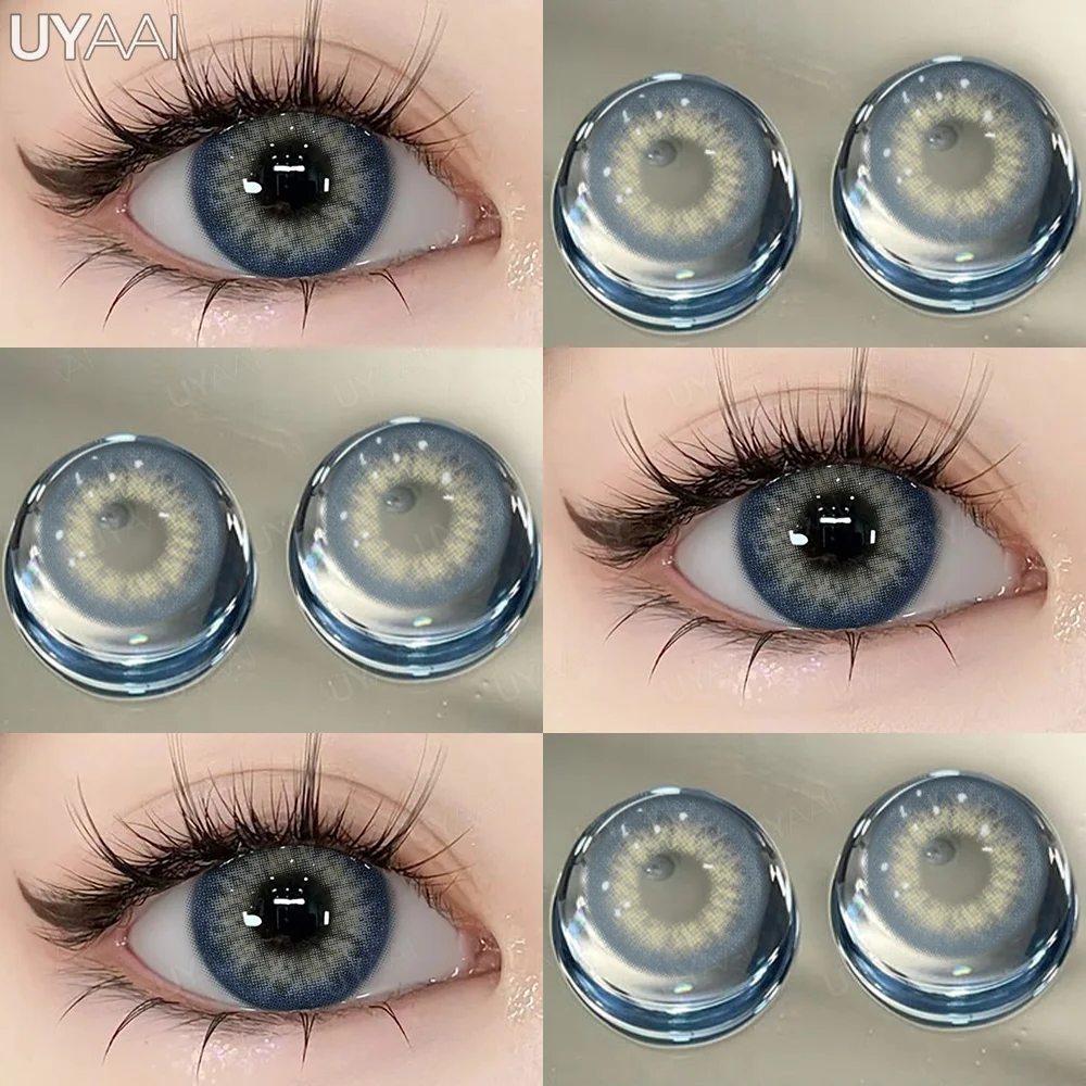 Qfdian 1 Pair Colored Contact Lenses for Eyes Natural Fashion Lenses Gray Beauty Pupils Blue Eye Lenses Cosmetics Soft Lenses