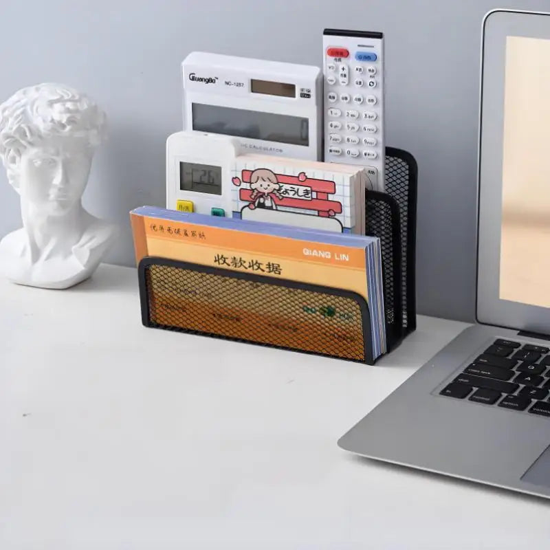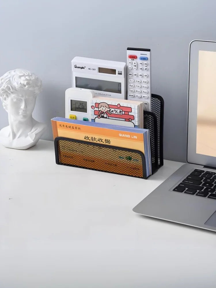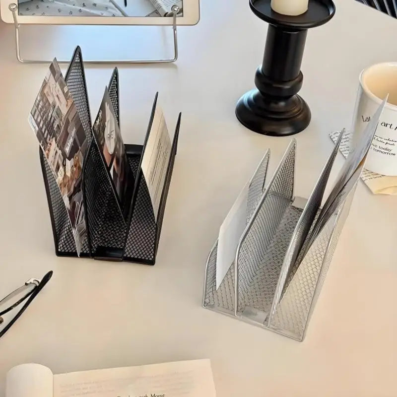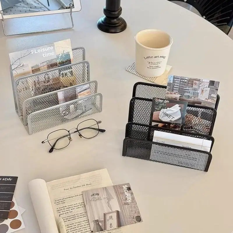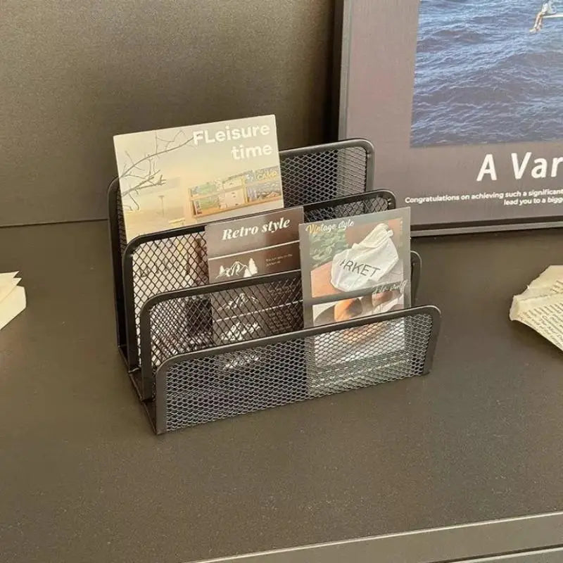 Qfdian 1 Pcs Black Desktop Office Storage Grid Metal Three-layer Business Card File Office Supplies Storage Rack