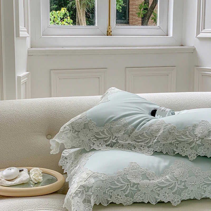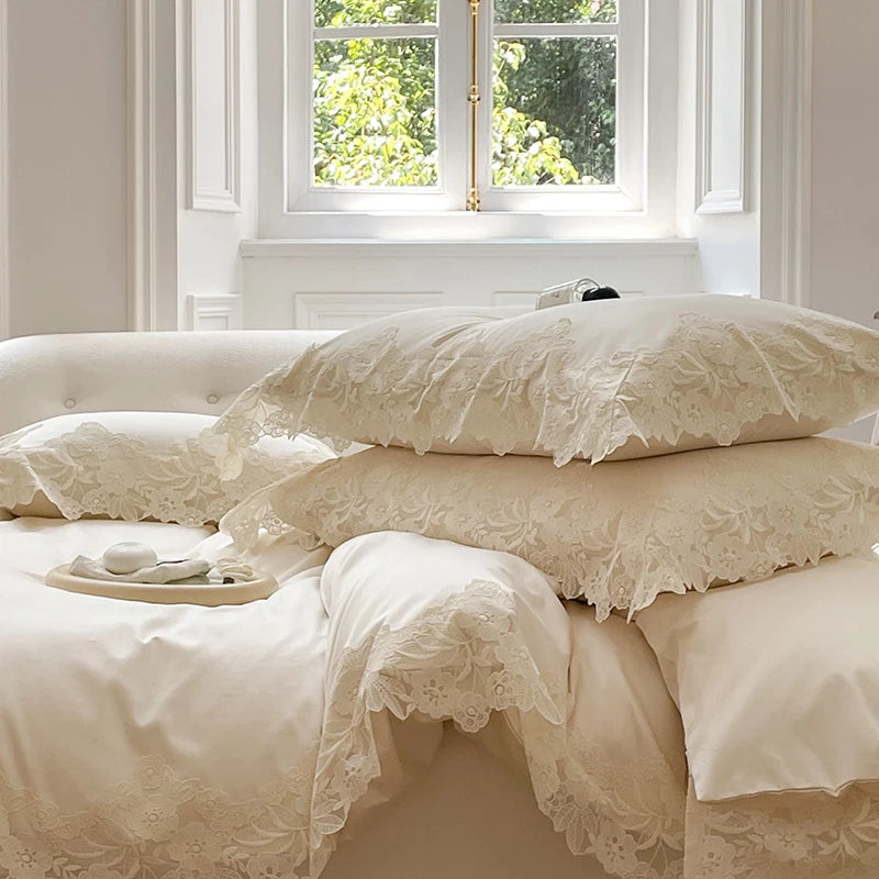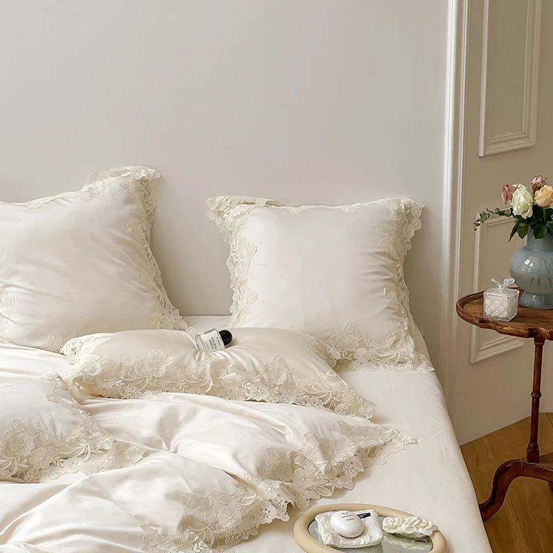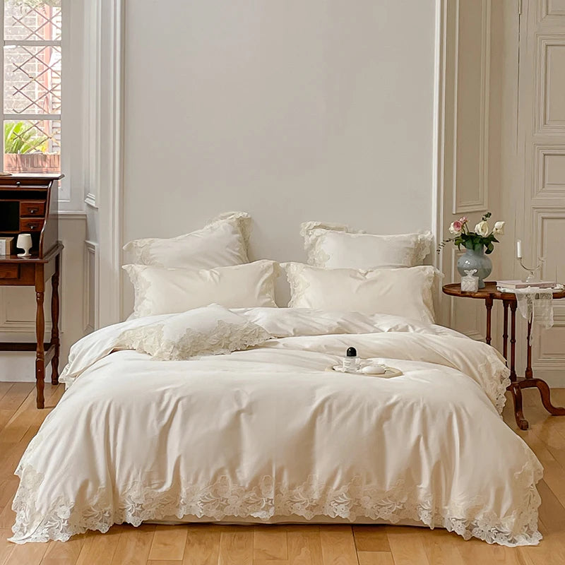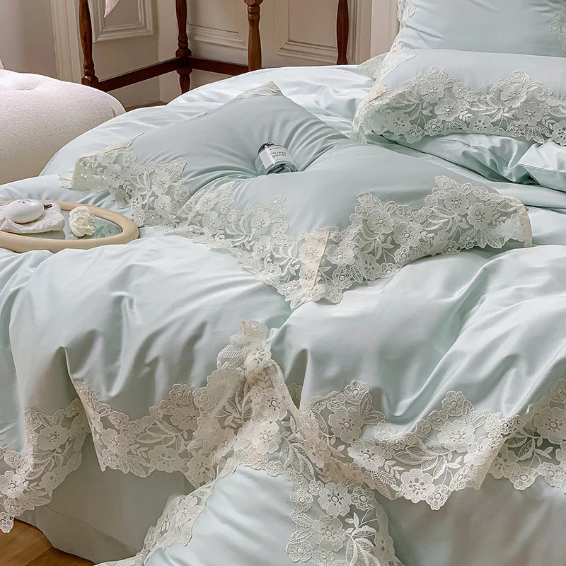 Qfdian 1000TC Egyptian Cotton Romantic Lace Edge Princess Wedding Pink 4/7Pcs Bedding Set Duvet Cover Flat/Fitted Bed Sheet Pillowcases