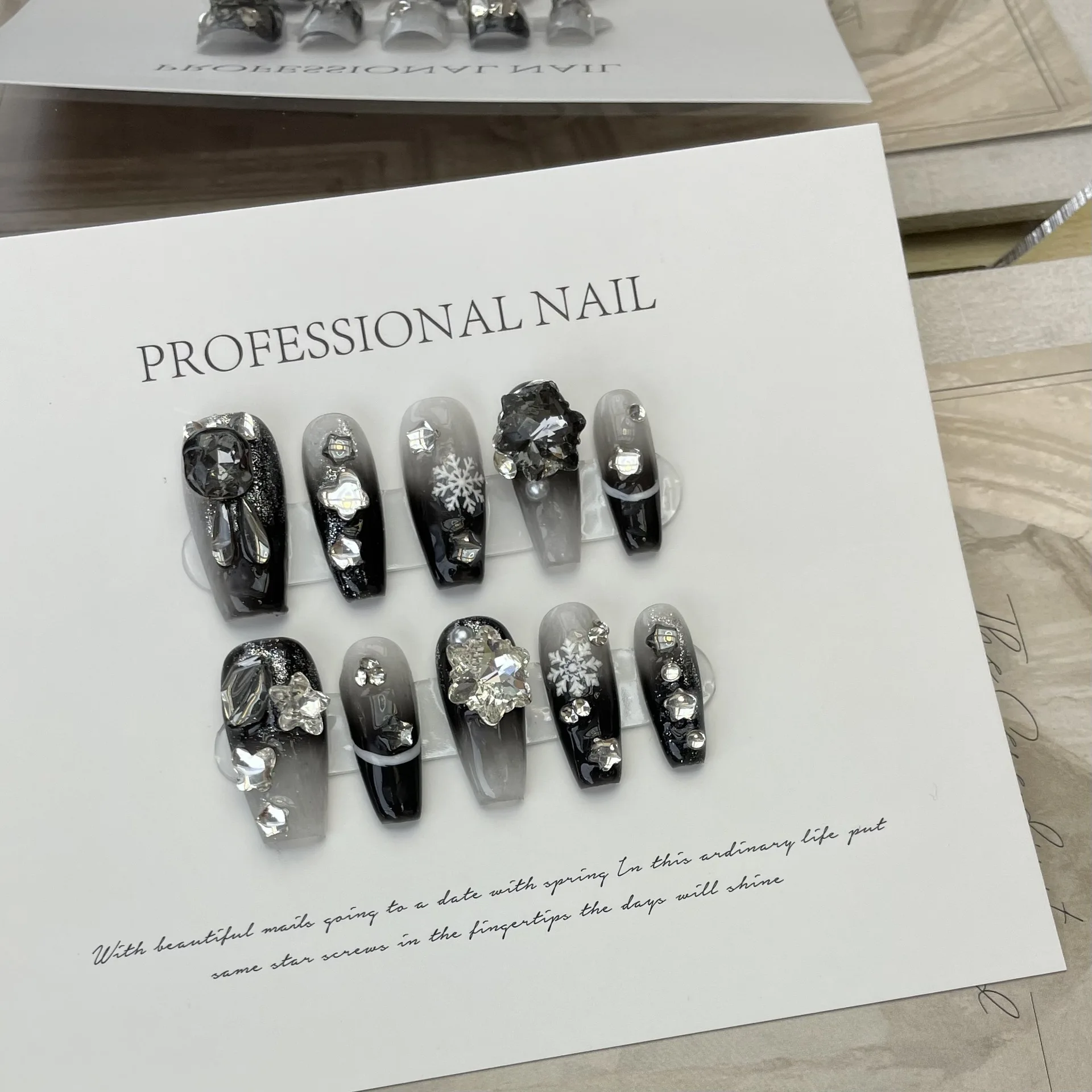 Qfdian 10pcs Handmade Dark Style Wearable Press on Nails Black Design Reusable Acrylic y2k Charm Nails Art Tips For Girls