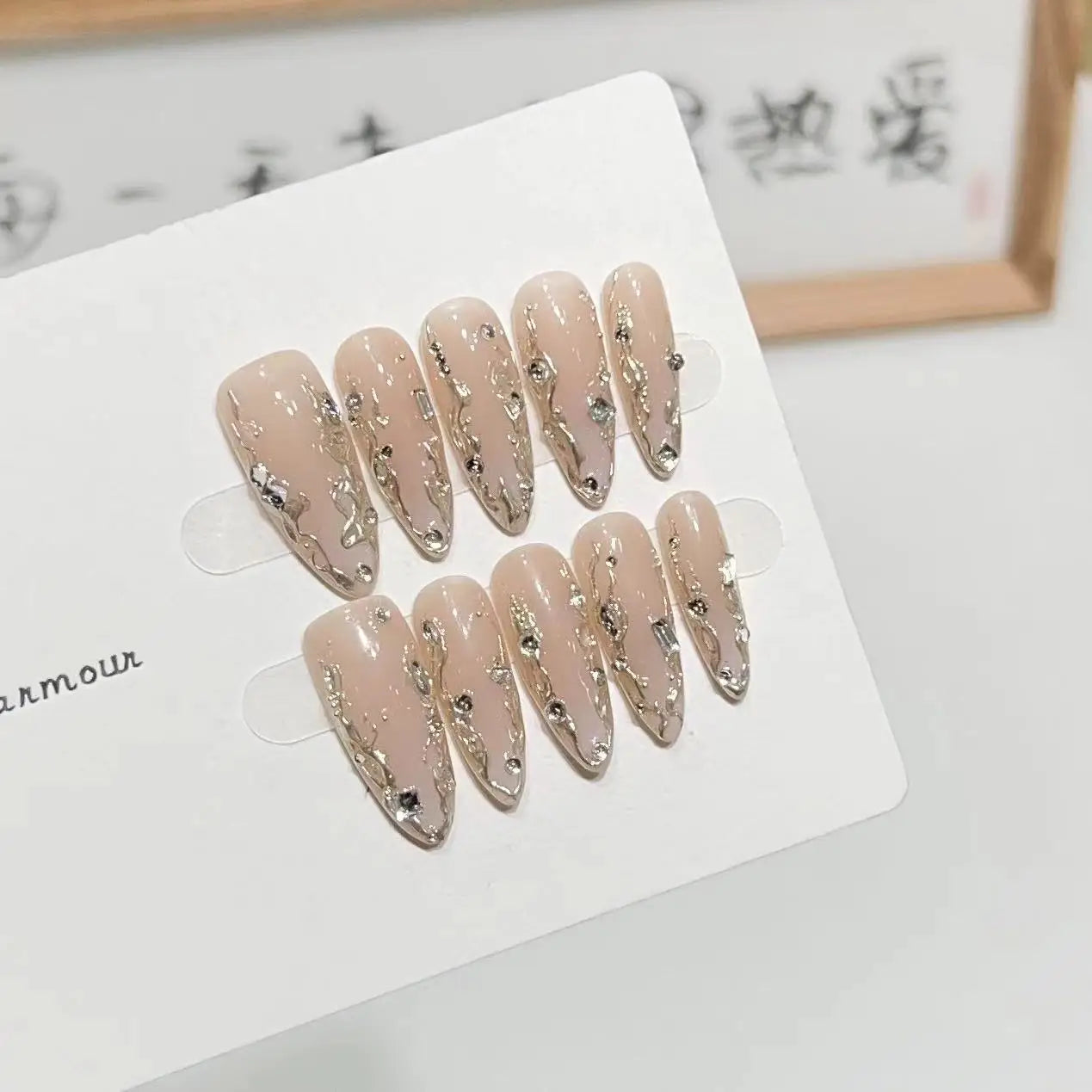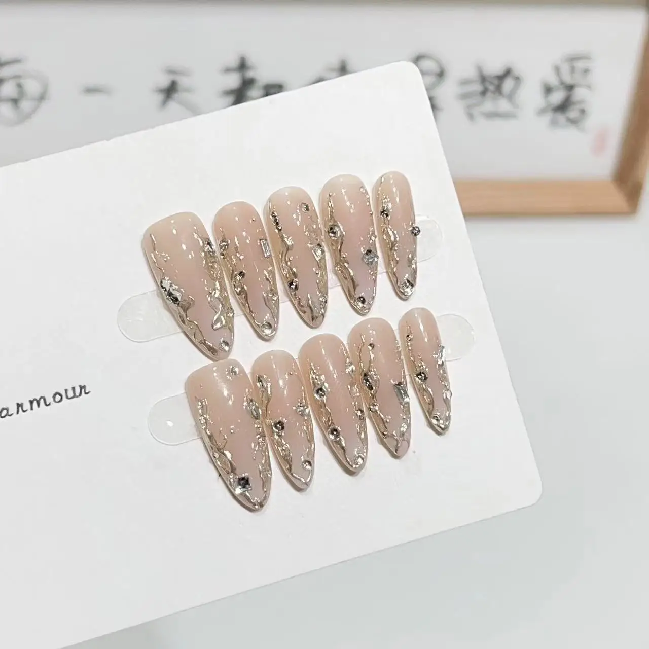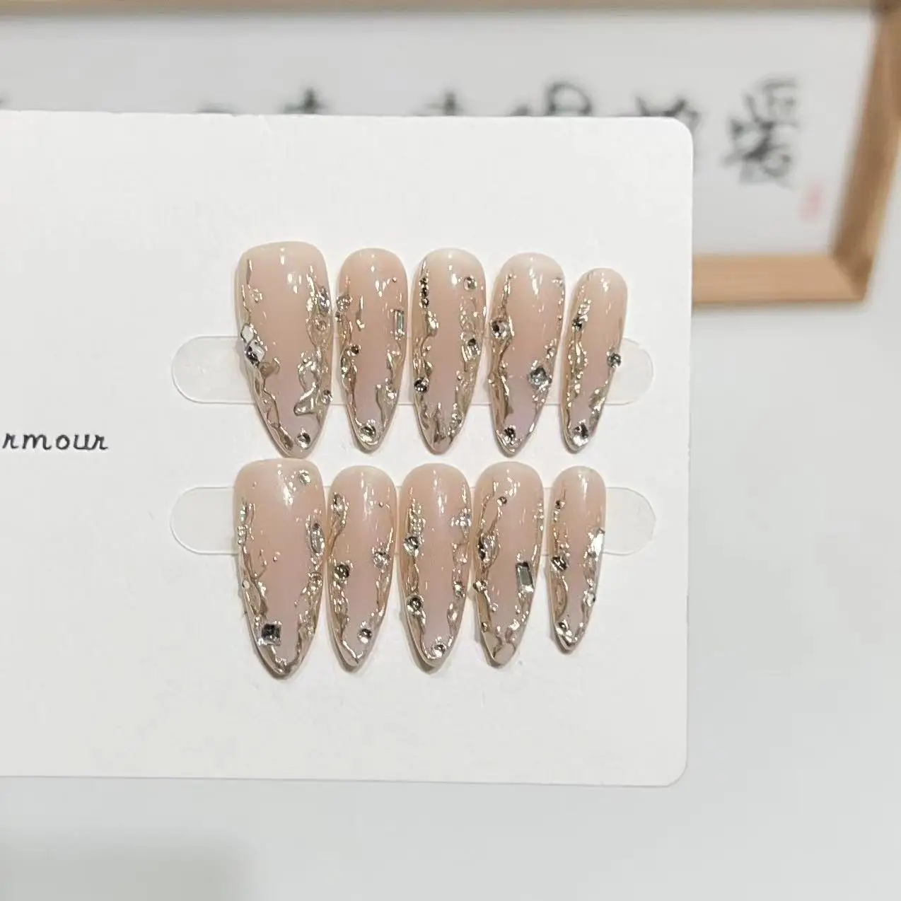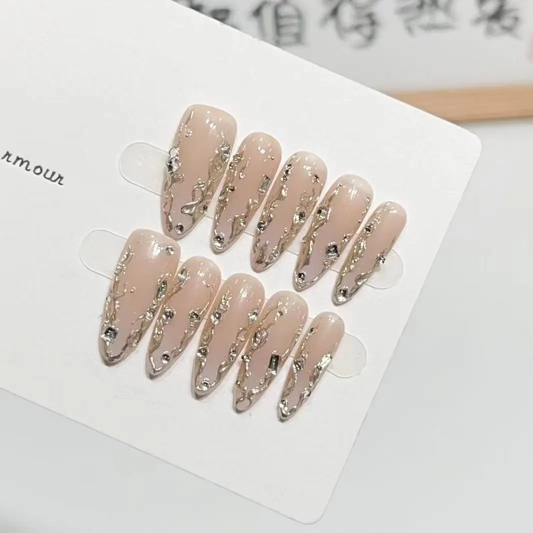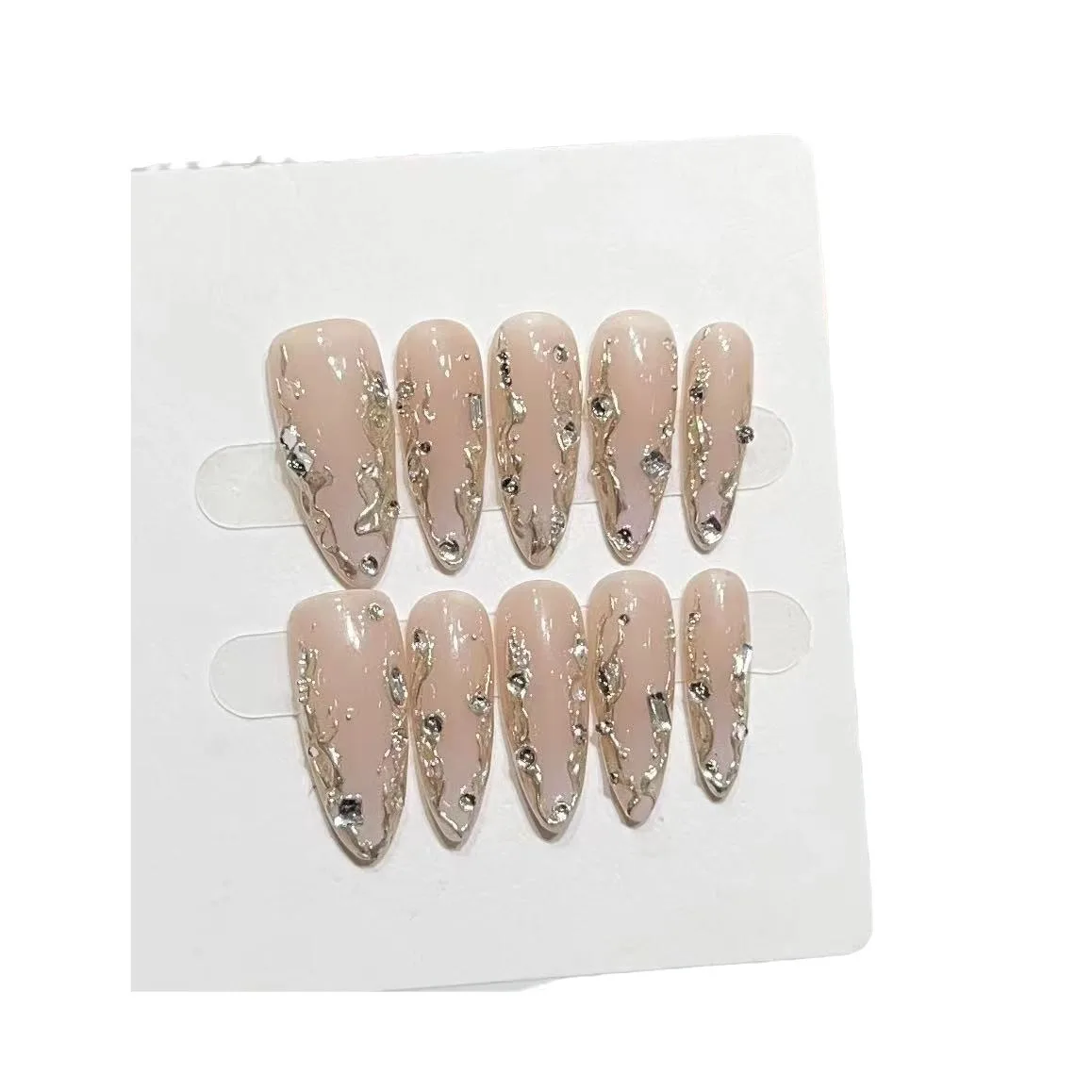 10pcs handmade detachable gradient Y2K magic mirror powder long almond press on nails ballet false nails wearable full cover