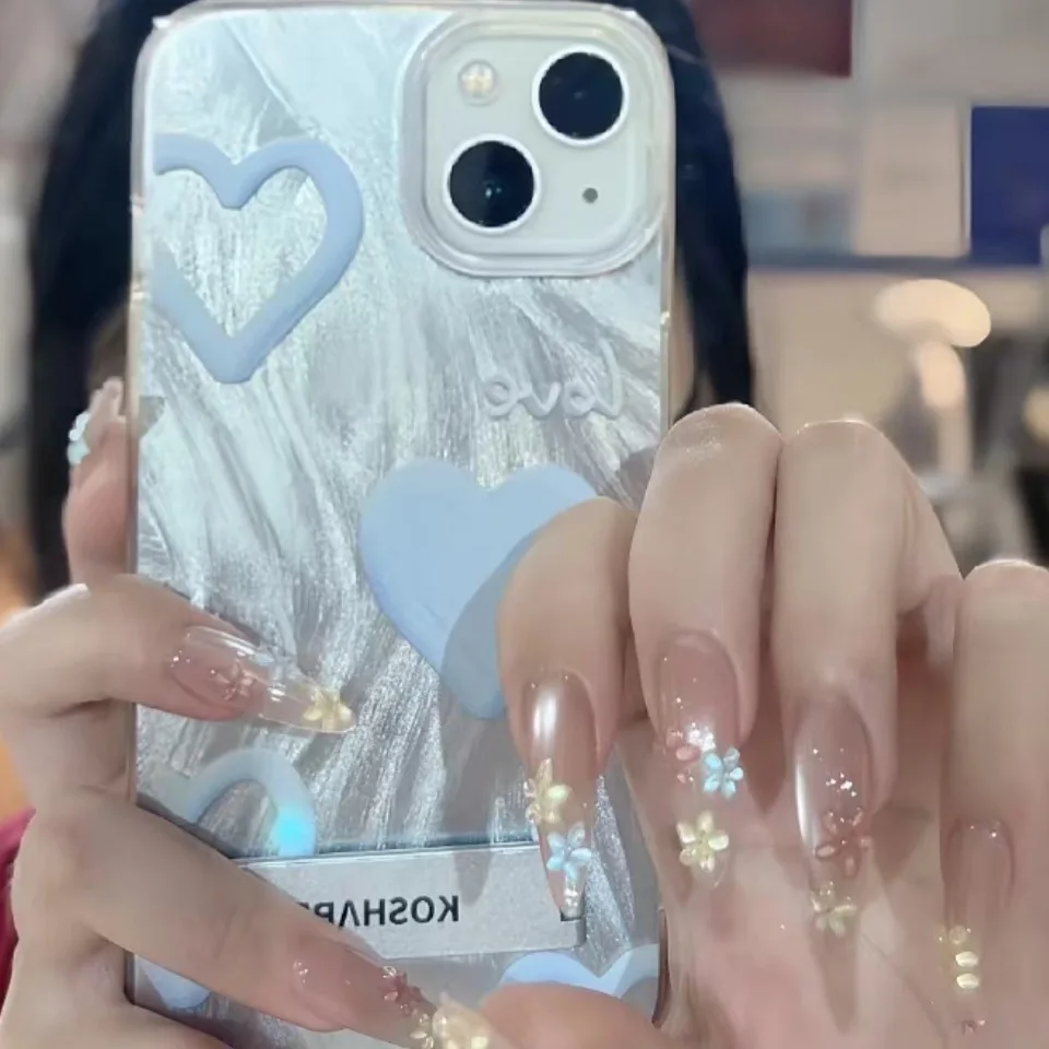 10Pcs Handmade Manicure Long Almond Fake Nails Cute Flower Limited Nails Press On Nails Design Wearable Nail Artificial Manicure