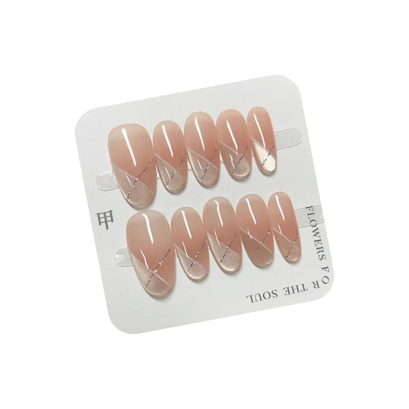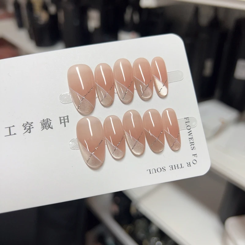 10Pcs Handmade Oval Press on Nails French Glitter Cat Eye Full Cover Blush Pink Fake Nails Wearable Nail Tips Art For Girl Gift
