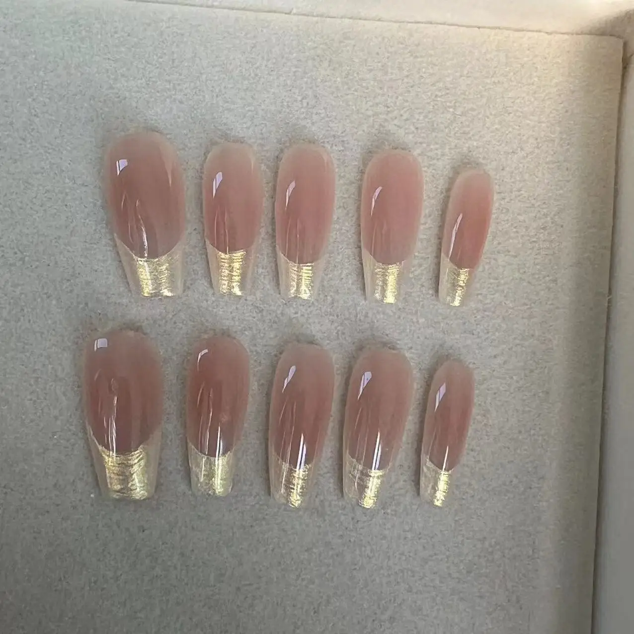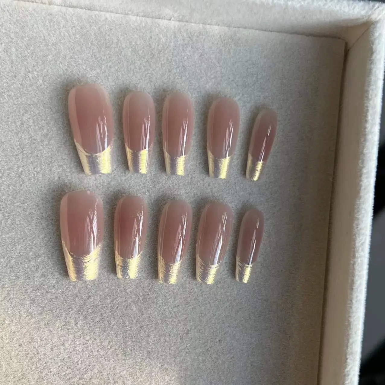 Qfdian 10pcs Handmade Pink French Tips Press On Nails Blush Red Long Acrylic False Nail Wearable False Nails For Girls