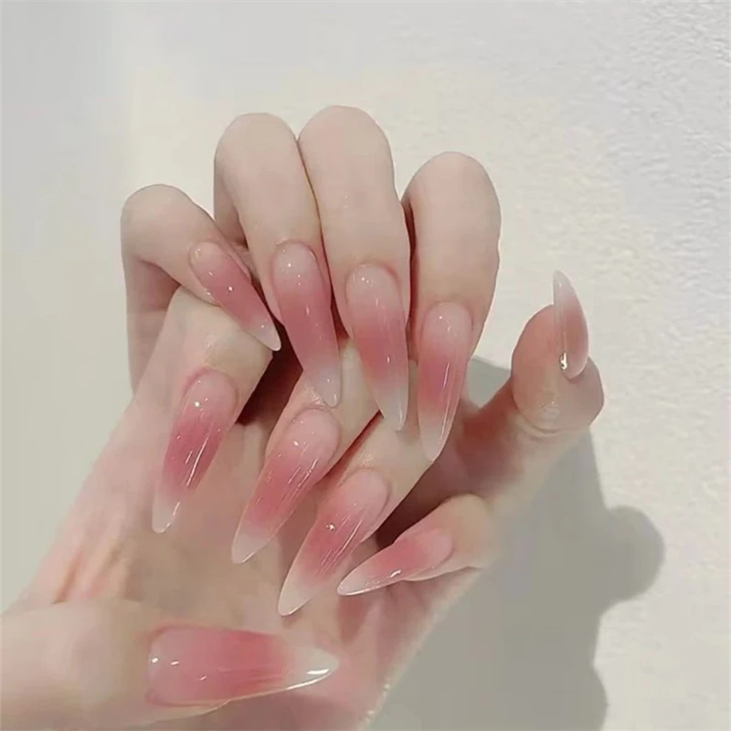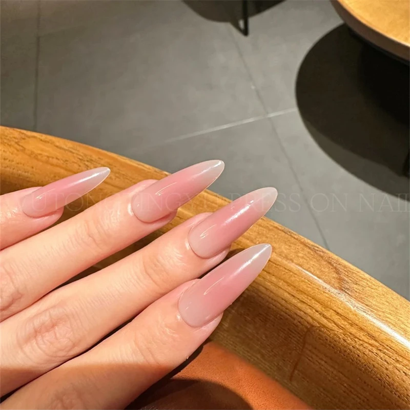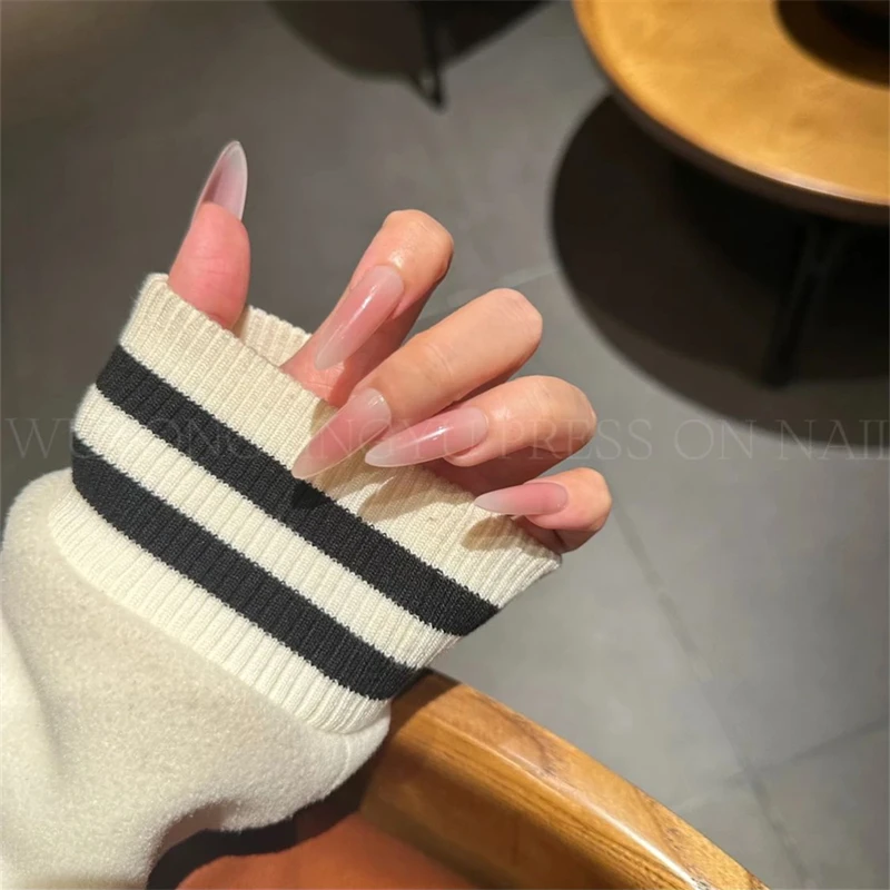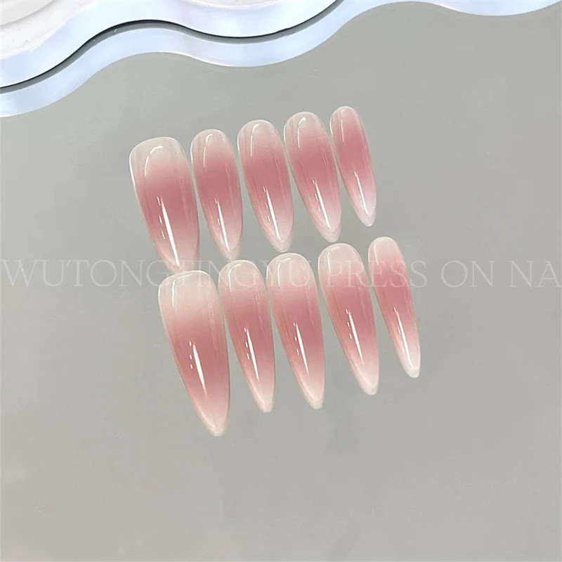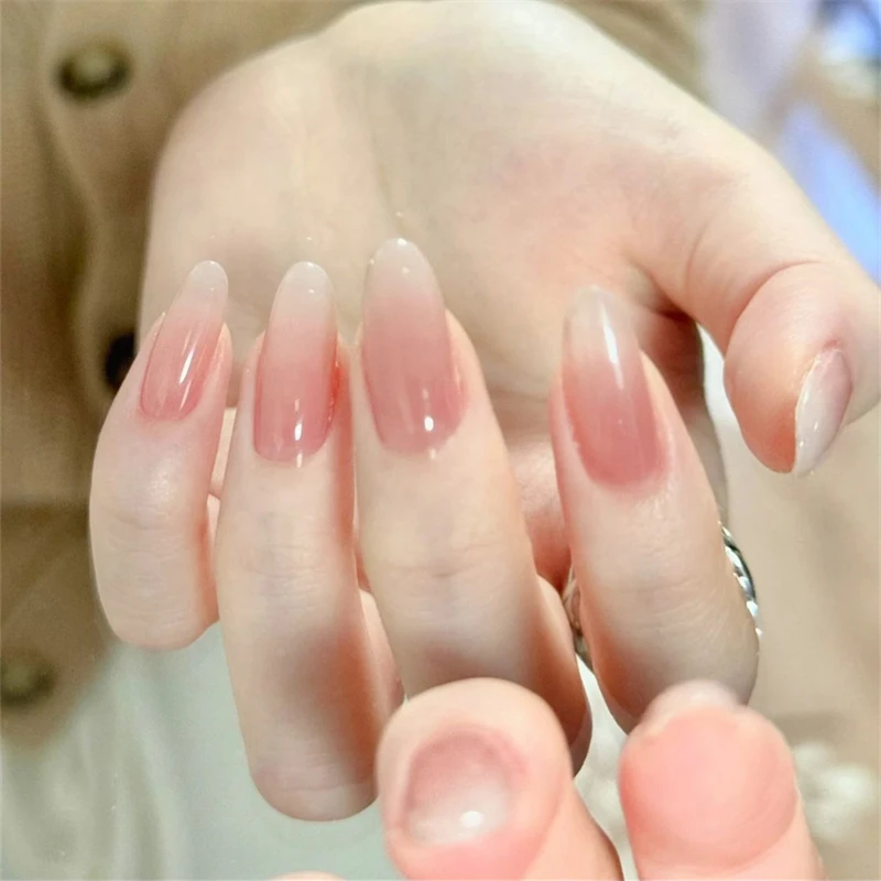 Qfdian 10pcs Handmade Press On Nails Fake Nails Honey Peach Blush Middle Short Almond Oval Coffin False Nails Gentle Nails Finger Tips