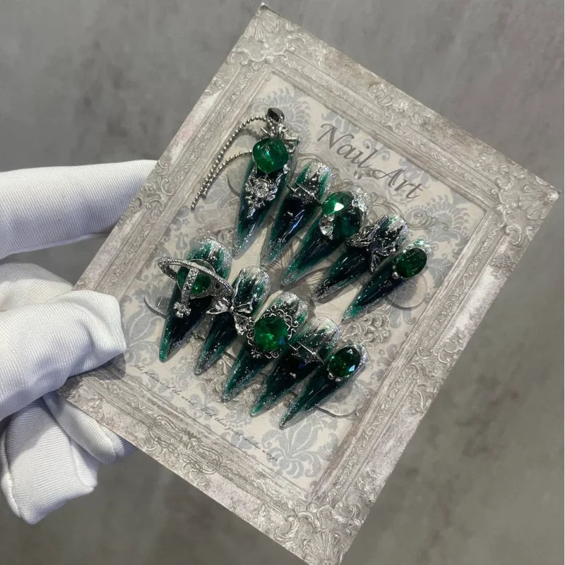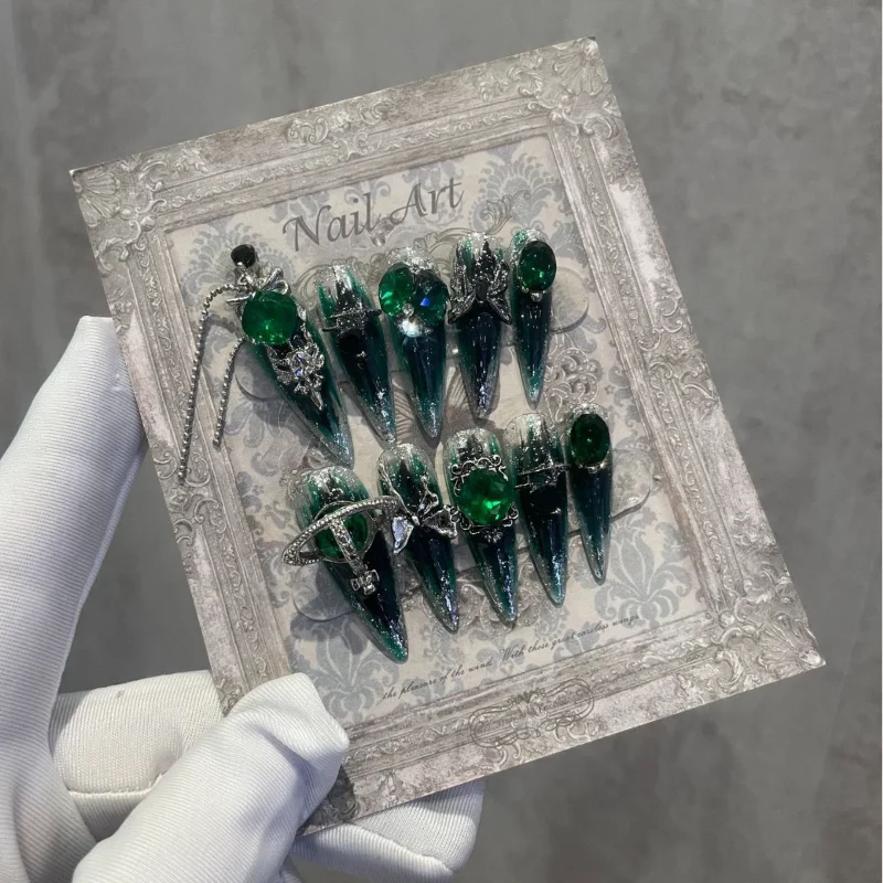 Qfdian 10Pcs High Quality Handmade Press on Nails Heavy Industry Diamond Decoration Luxury Dark and niche style Spicy Girl Nail Diamond
