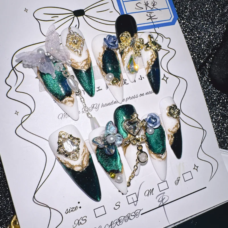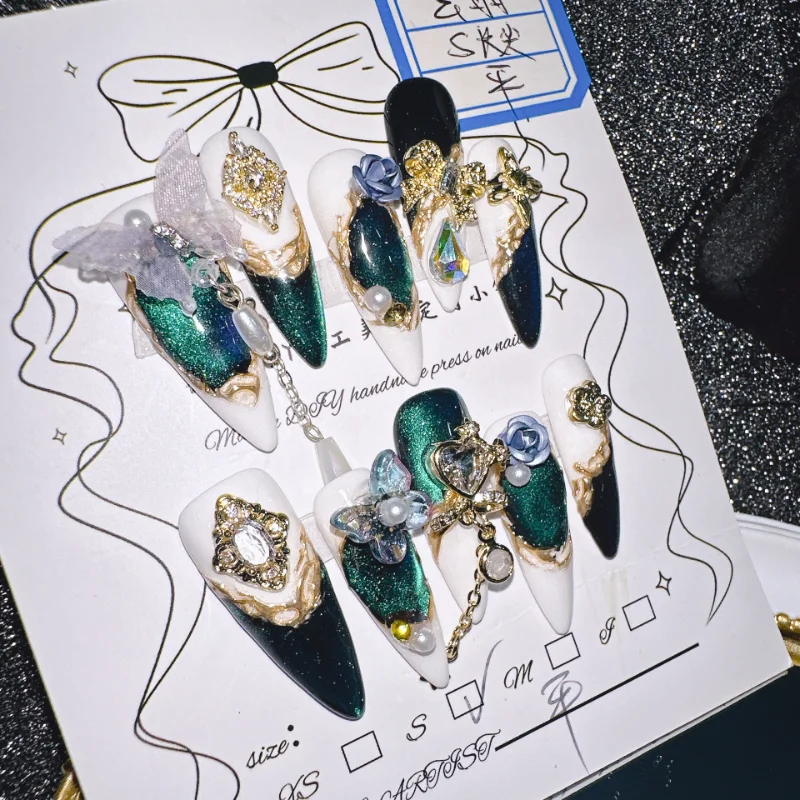 Qfdian 10Pcs High Quality Handmade Press on Nails Nail art Cancer Super Sparkling Dark Style Spicy Girl