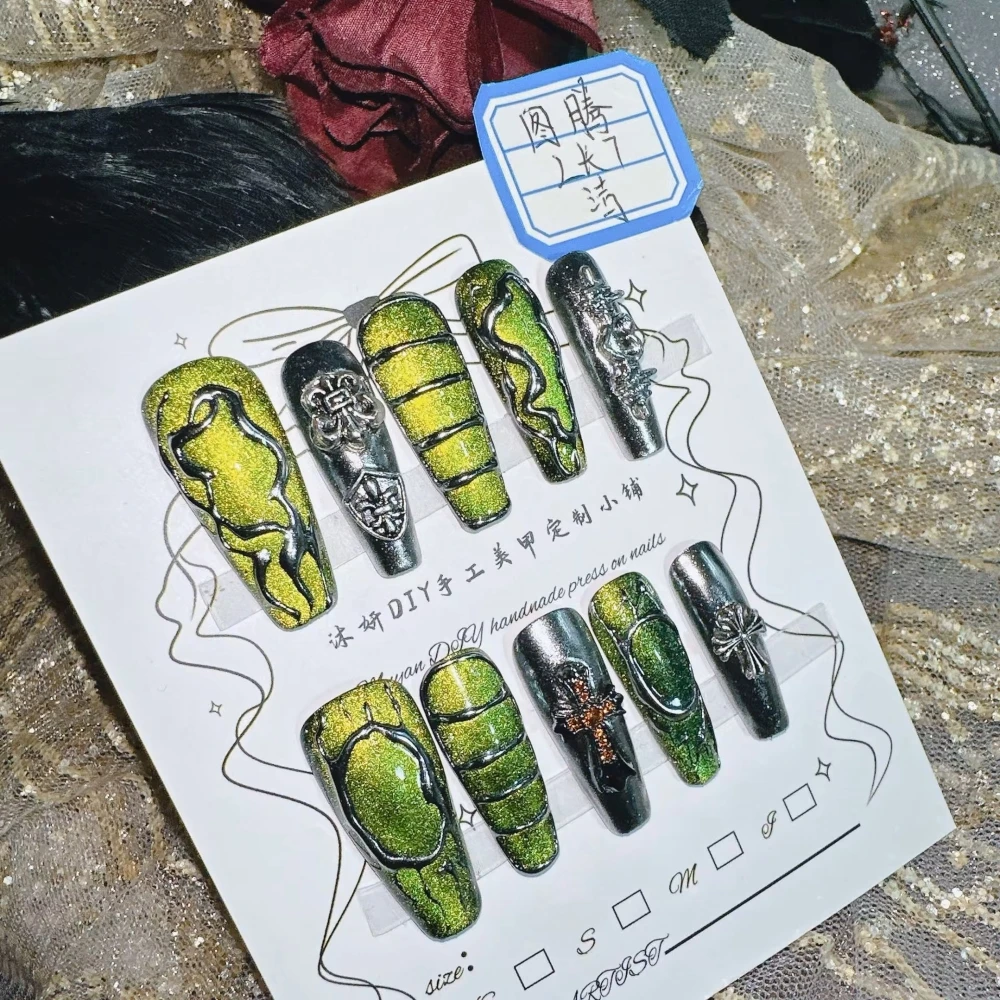 Qfdian 10Pcs High Quality Handmade Press on Nails New Chinese Style Ancient Style Chinese Style Pure Hand-painted High-end Feeling