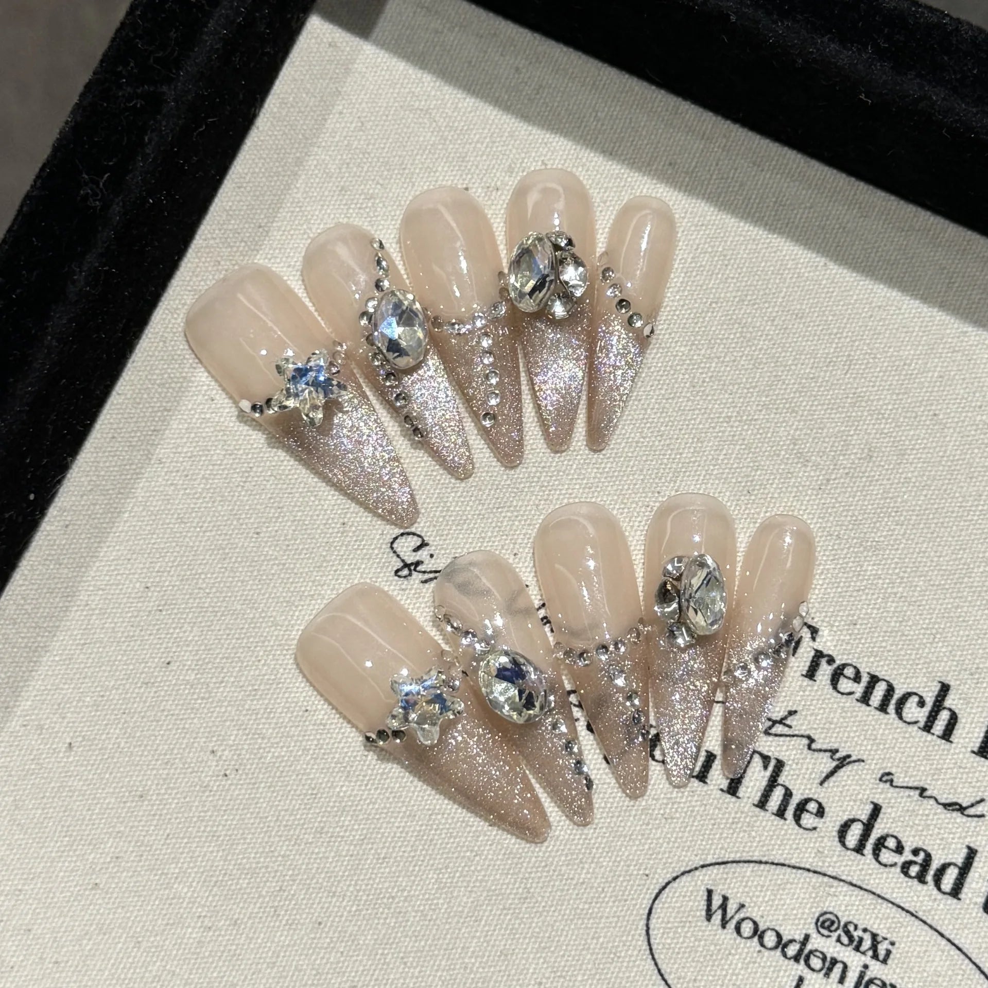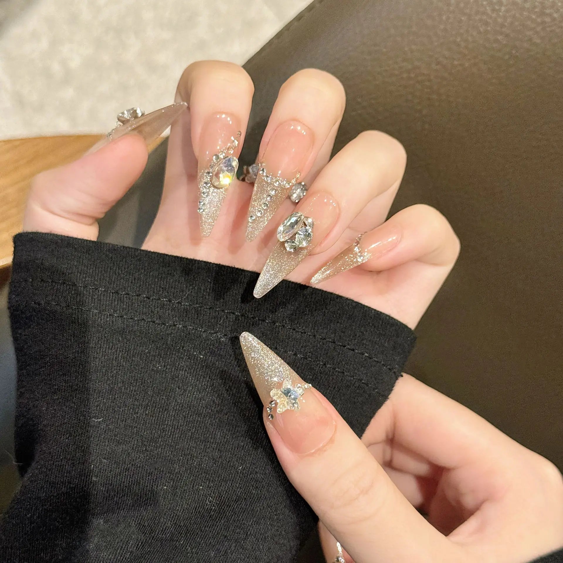 10pcs Luxury Handmade False Nail Y2k Glitter French Press On Nails Shiny Diamond Decor Fake Nail Wearable Manicure Nail Tips