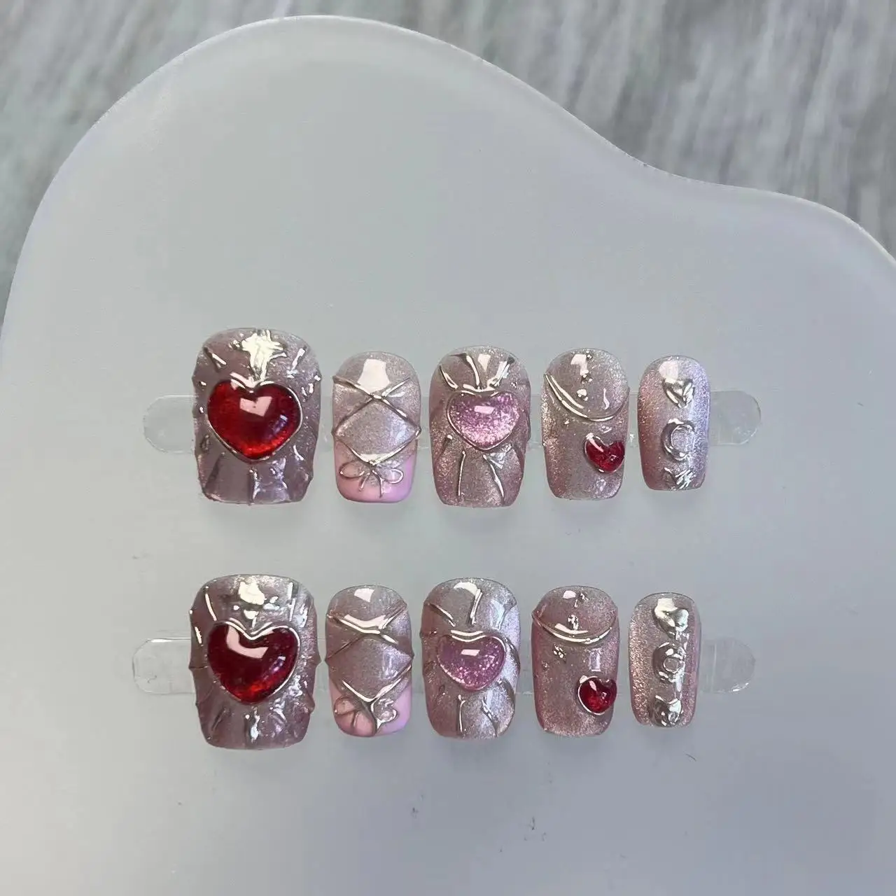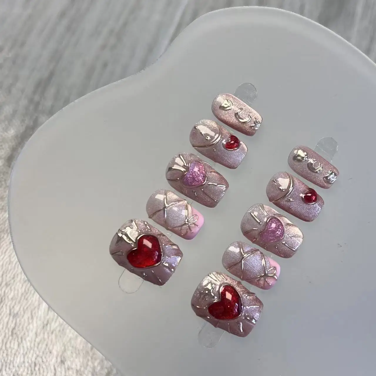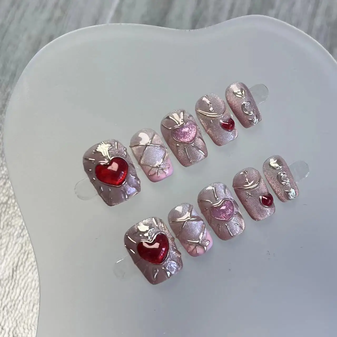 10PCS Wearable Handmade Press On Nails Pink y2k Designed Fake Nail Reusable Artificial Manicuree Art Nail Tips For Girls