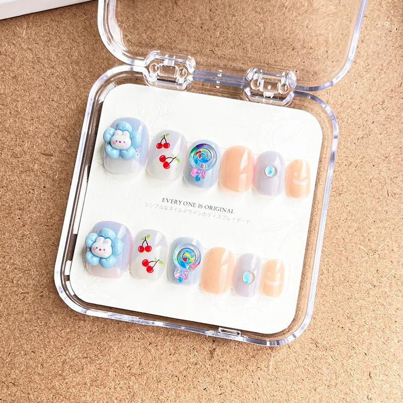 Qfdian 12Pcs/Set Cartoon Style Kids Fake Nails Detachable Press On Fake Nails Full Cover Press Stick On Nails Children Nail Decor