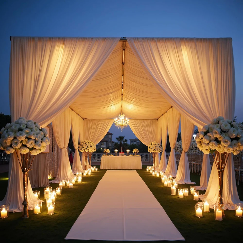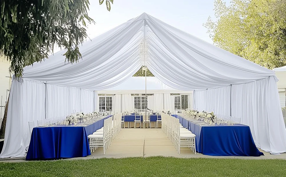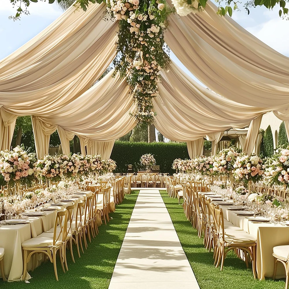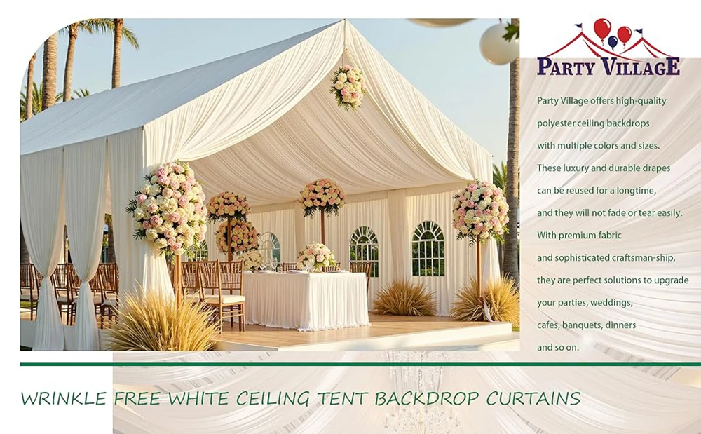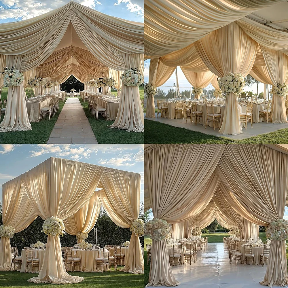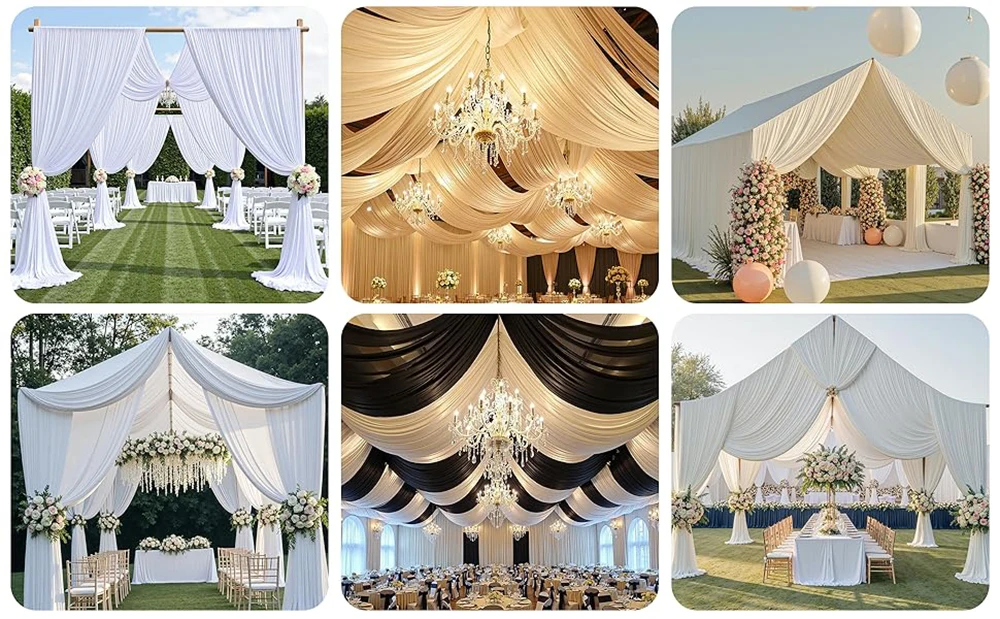 Extra-Long Brilliance: This draping fabric, with its expansive different Length, allows for grand and luxurious draping panels, making it an ideal choice for creating stunning backdrops, ceiling decor and tent draping that captivate attention.