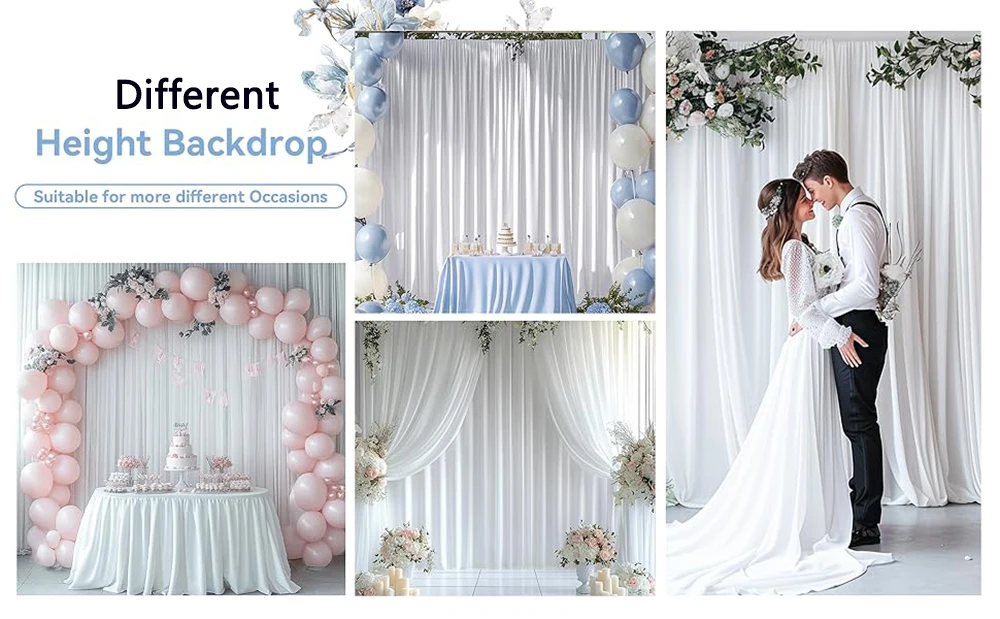 Wide Compatibility: This differert tall backdrop drapes are perfect for kinds of occassions. Such as wedding reception, party decoration, baby showers, sweet birthday, photobooth, photography studio, graduation, home decoration, arch draping for backdrops and more.