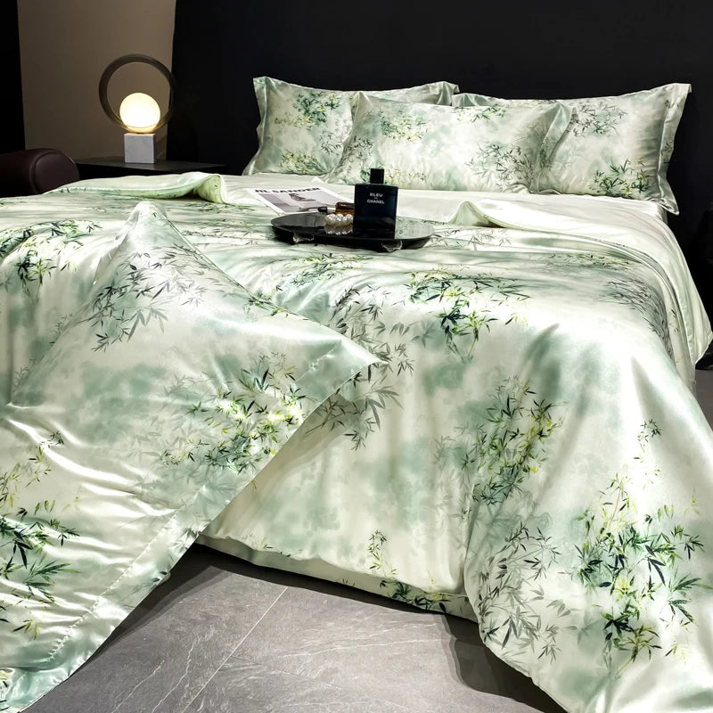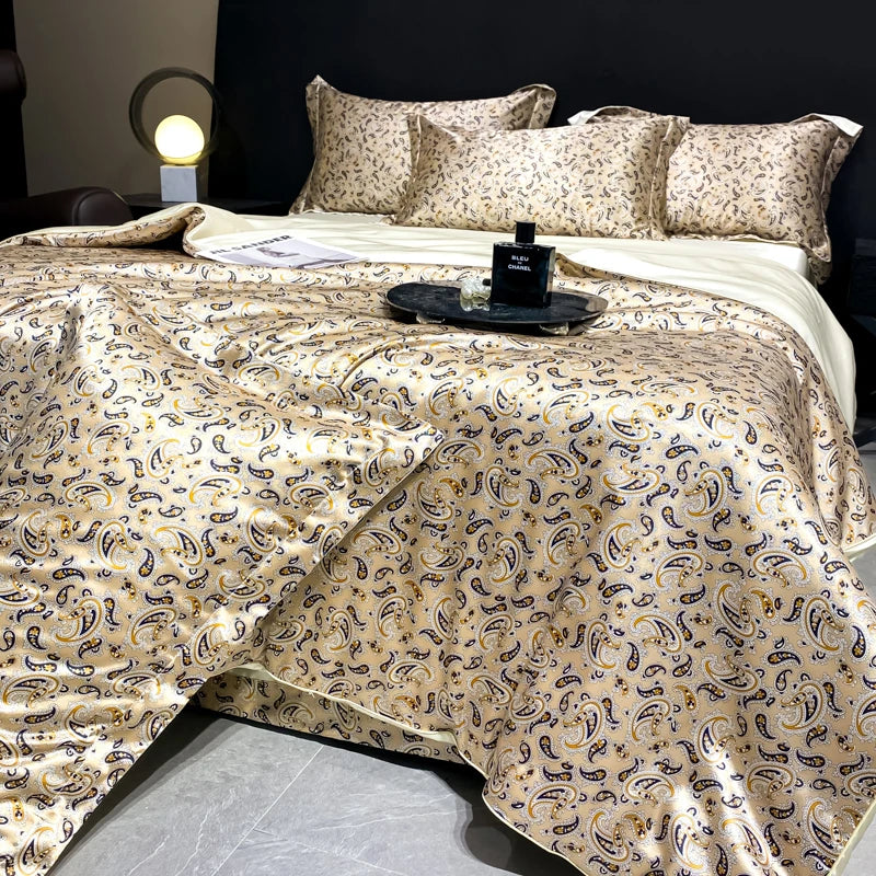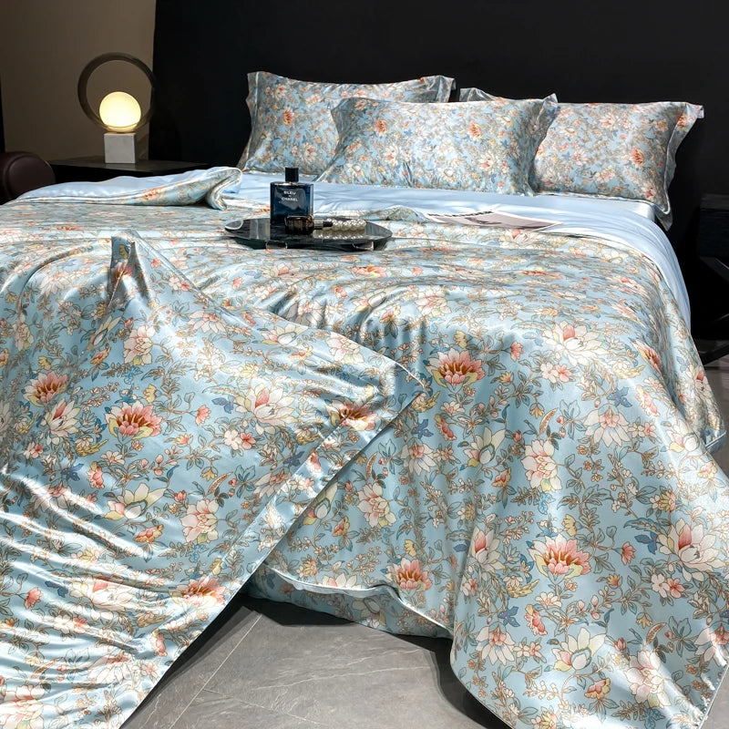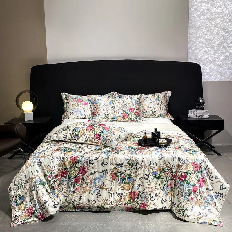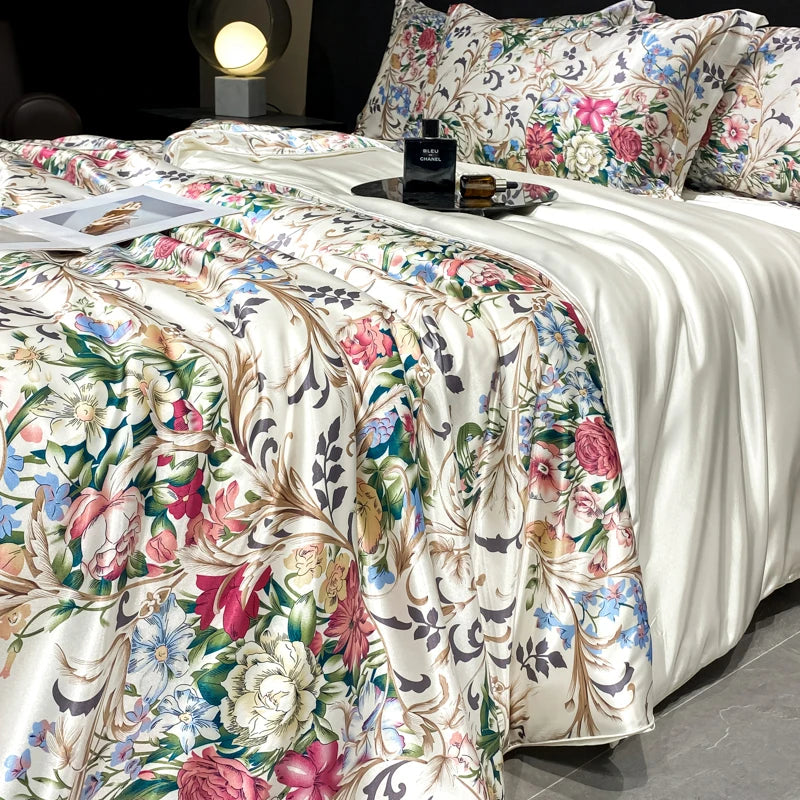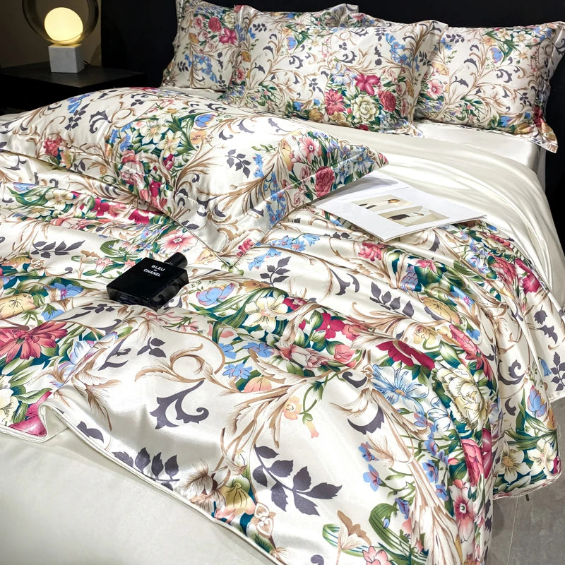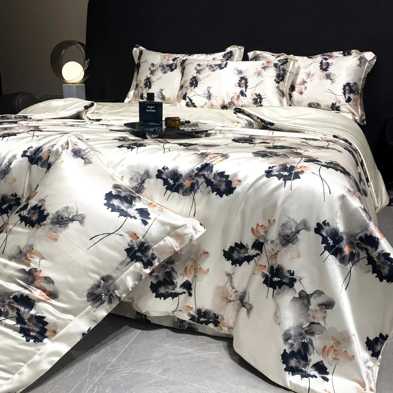 Qfdian 2025 new high-end luxury silky Sleeping naked digital printing washed silk style Bedding Set Duvet Cover Bed Sheet Pillowcases