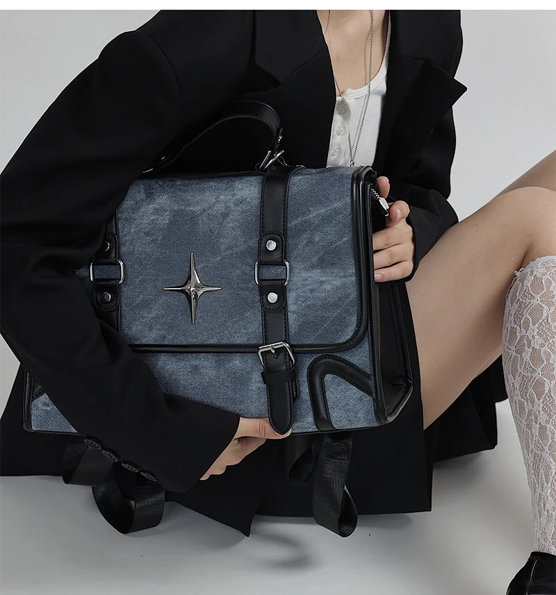Qfdian 2025 New Trendy Fashion Students Schoolbags High-capacity Preppy Women Shoulder Handbags Vintage Y2k Aesthetic Star Backpacks