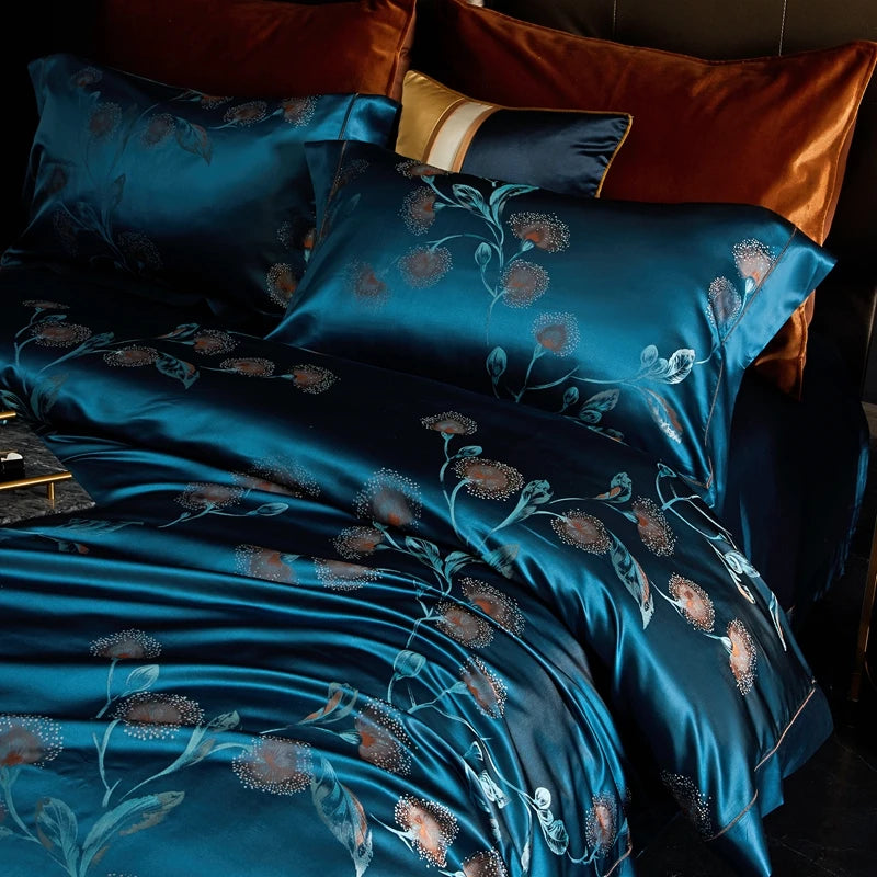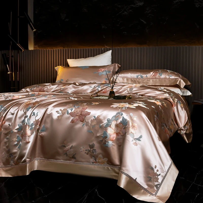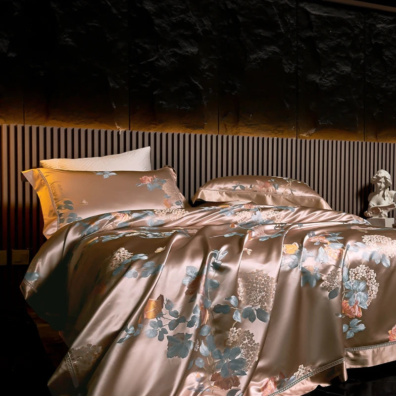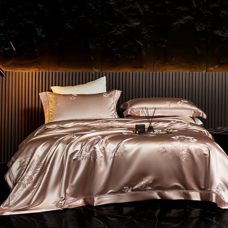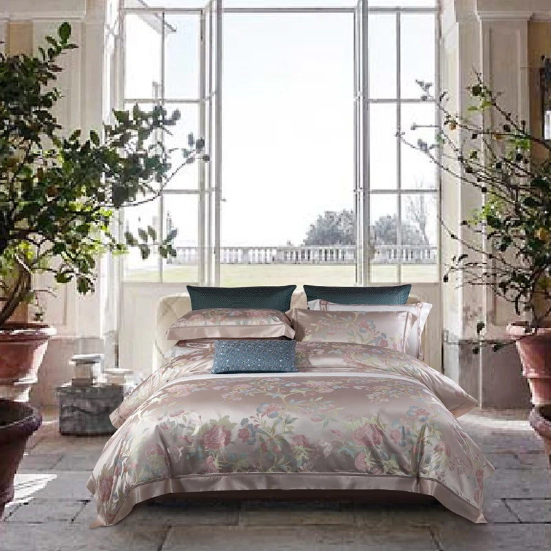 Qfdian 22 Momme Natural Mulberry Silk Luxury Bedding Set Yarn-dyed Jacquard Silk Cotton Duvet Cover Flat Sheet With Pillowcases 4Pcs