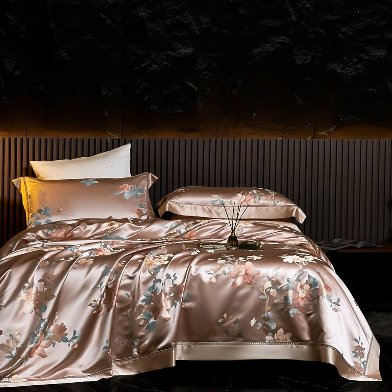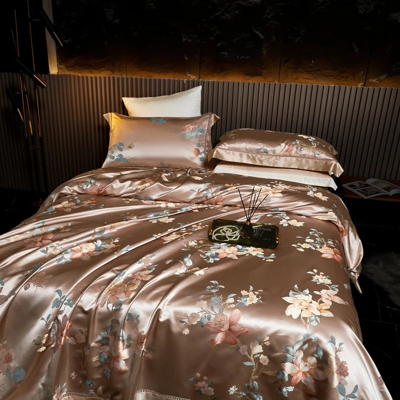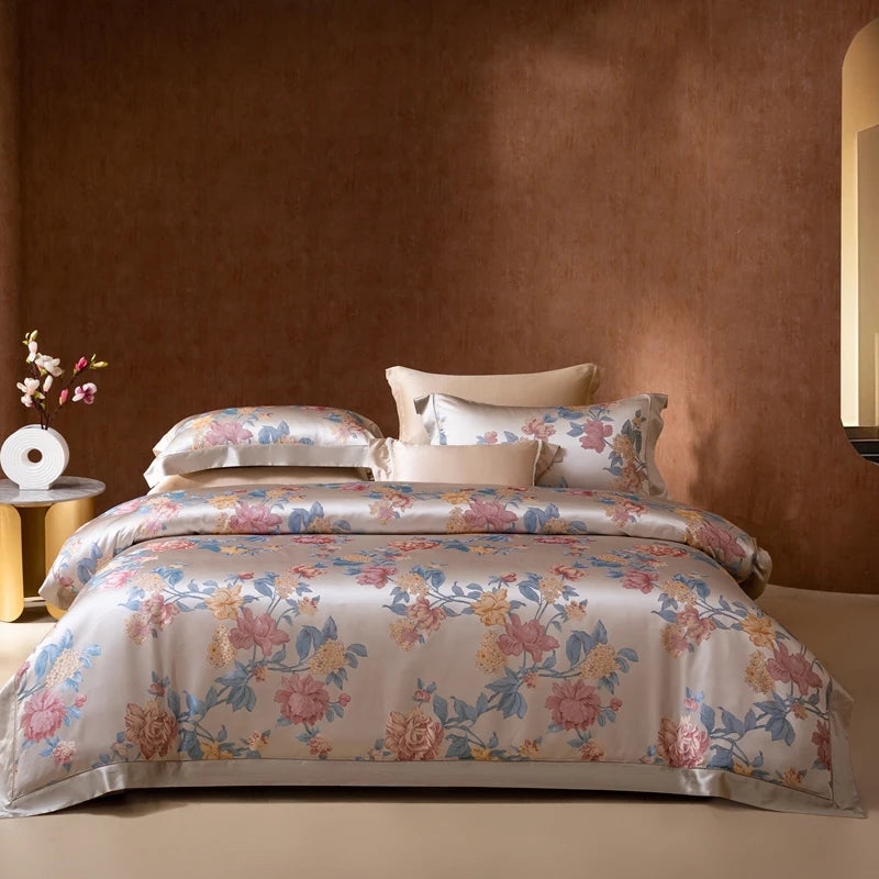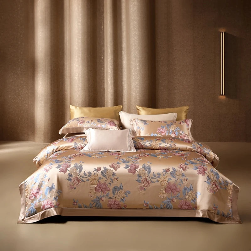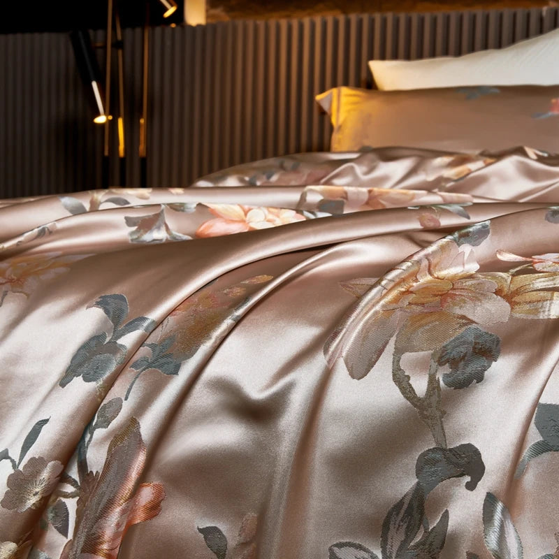 Qfdian 22 Momme Natural Mulberry Silk Luxury Bedding Set Yarn-dyed Jacquard Silk Cotton Duvet Cover Flat Sheet With Pillowcases 4Pcs