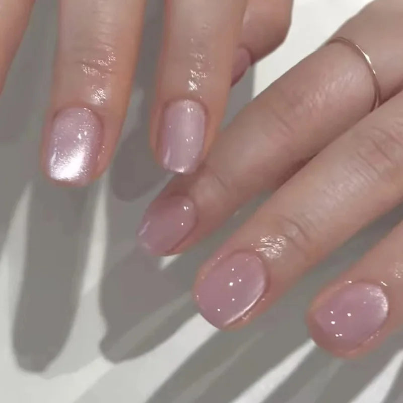 24Pcs Nude Pink Nail Tips Short Round Head False Nails with Design Wearable Finished Fake Nails Full Cover Press on Nails