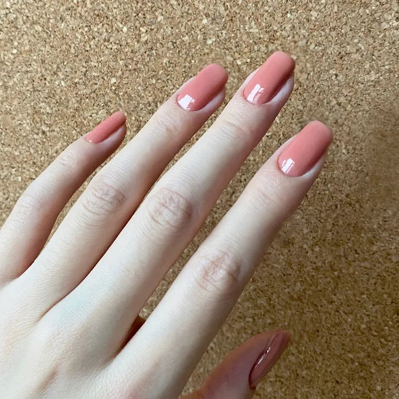 Qfdian 24Pcs Nude Pink Nail Tips Short Round Head False Nails with Design Wearable Finished Fake Nails Full Cover Press on Nails