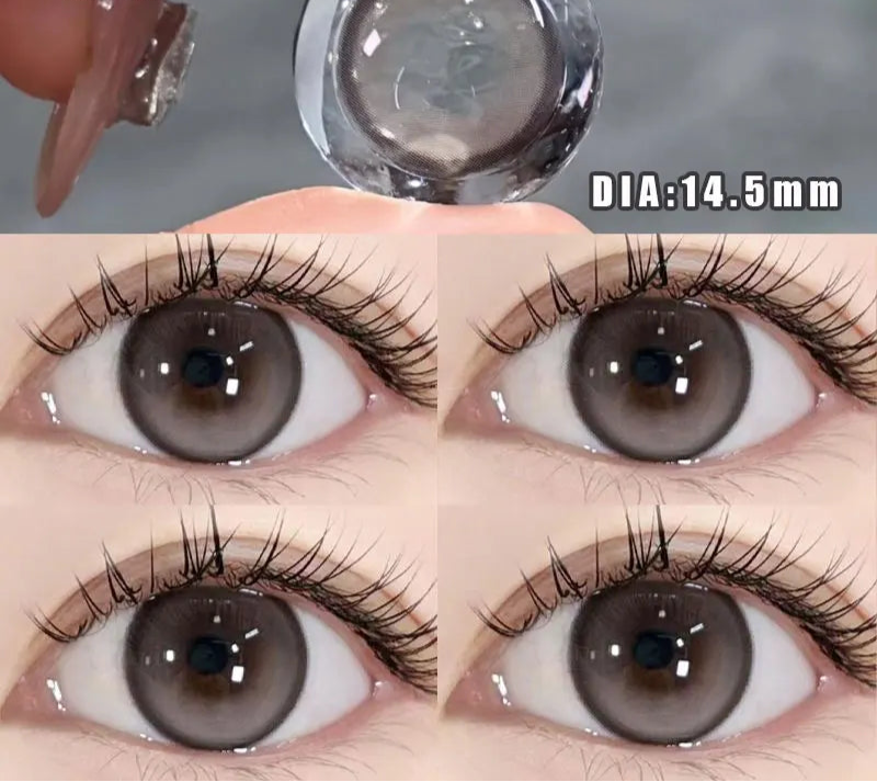 Qfdian 2Pcs Korea Colored Contact Lenses Diameter 14.5mm Prescription Myopia Degree-0.00to-8.00Makeup Soft Lens Eye Beauty Pupil