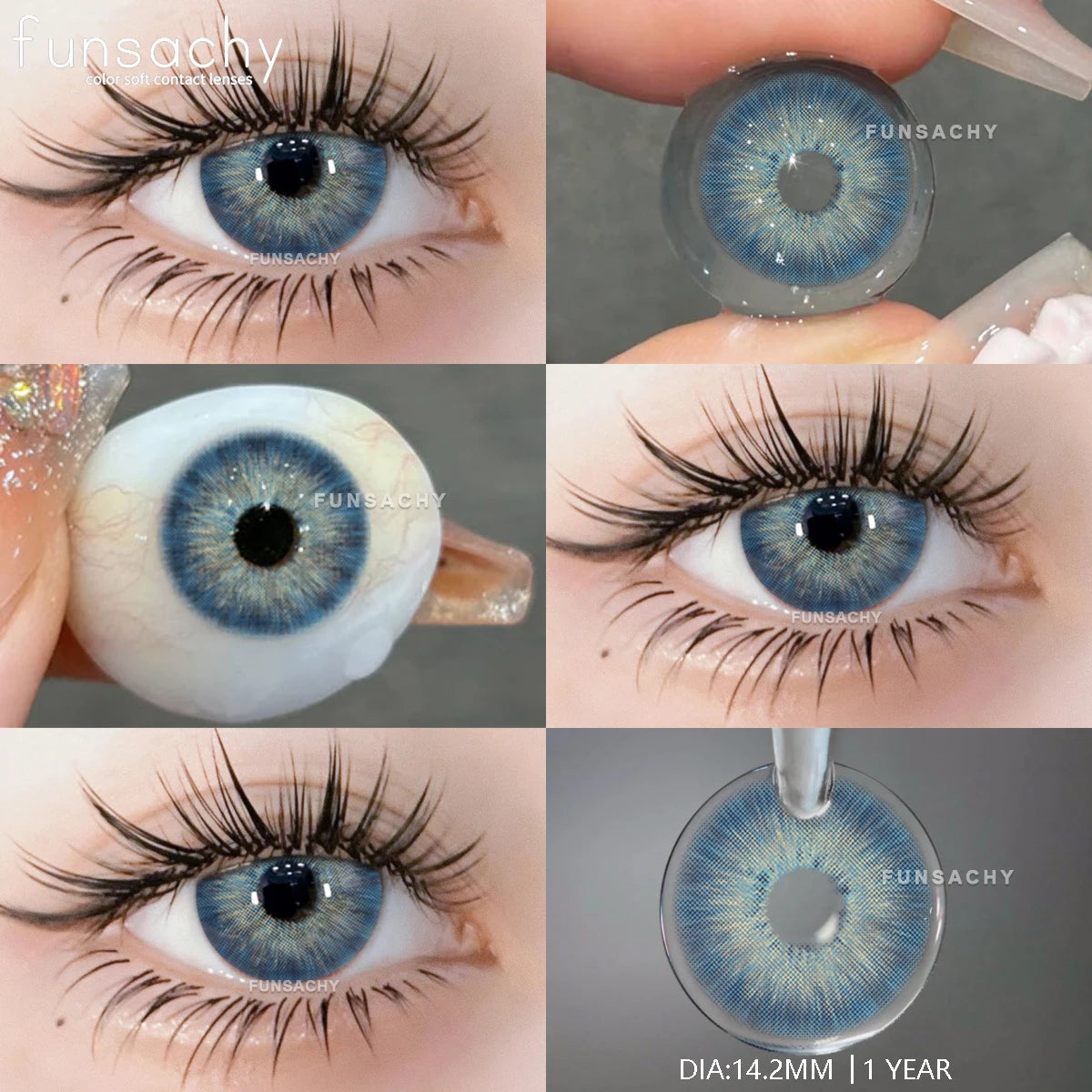 Qfdian 2Pcs Natural Gray Contact Lenses Yearly Brown Colorcon Makeup Blue Pupils Green Lens for Eyes High Quality Soft Contact