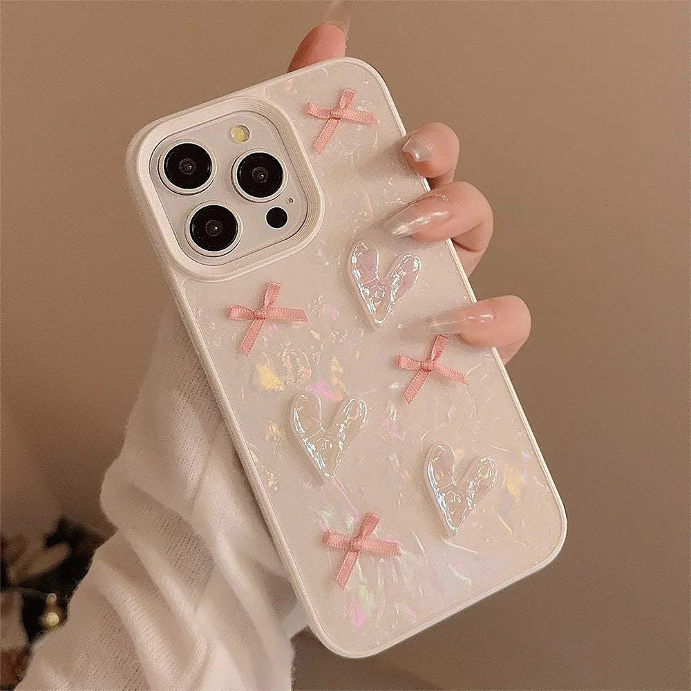 Qfdian 3D pink bow love phone case for iphone 13 pro max 15pro 11 13pro 15promax 14promax 12 sweet bright shell shockproof cover girl