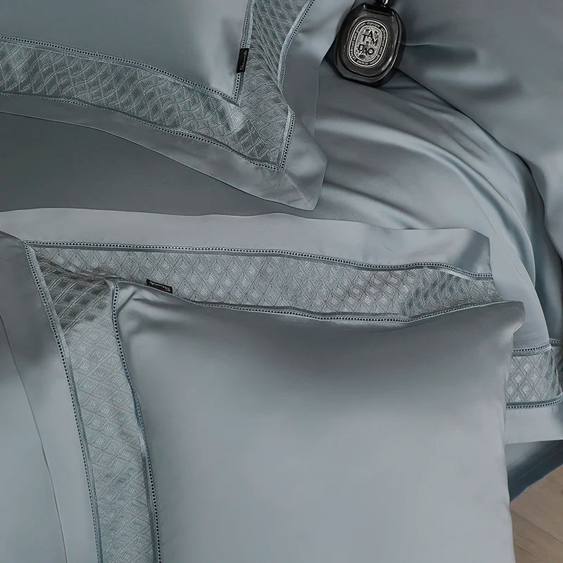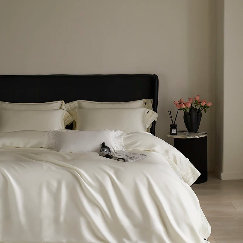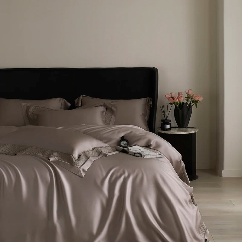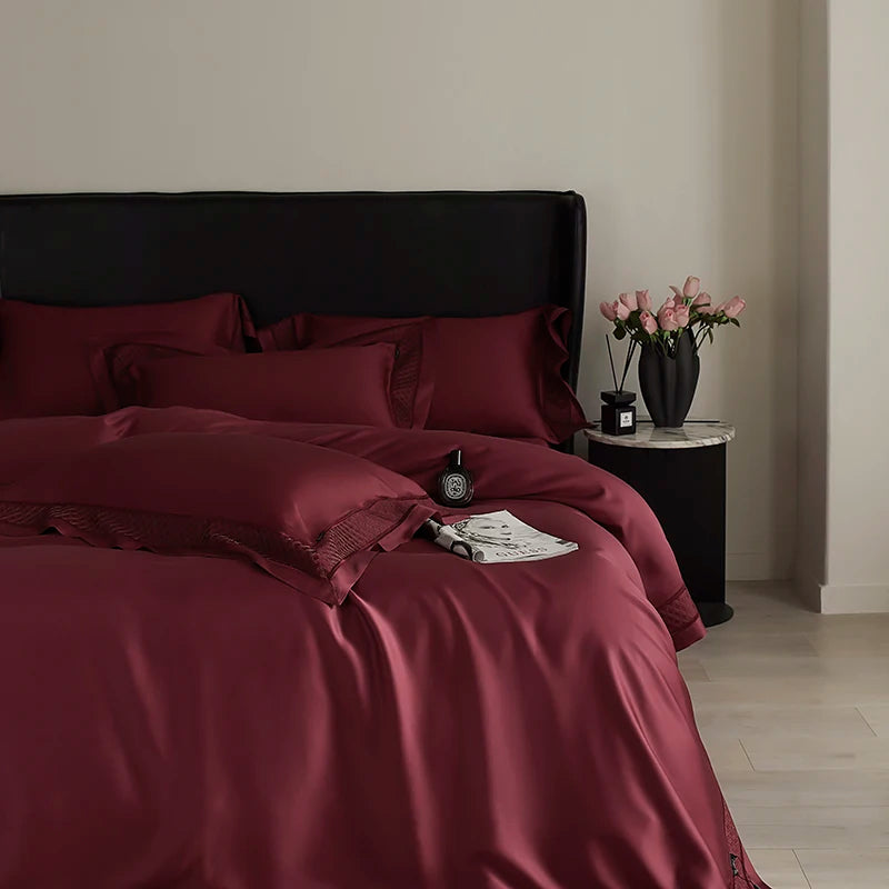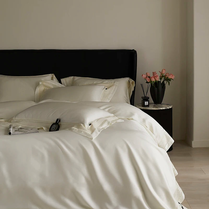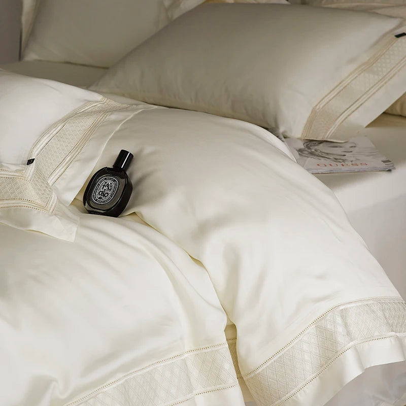 Qfdian 4Pcs Luxury Embroidery 1000TC Lyocell Eucalyptus Fiber Soft Silky Bedding Set Duvet Cover Set Bed Sheet/Fitted Sheet Pillowcases