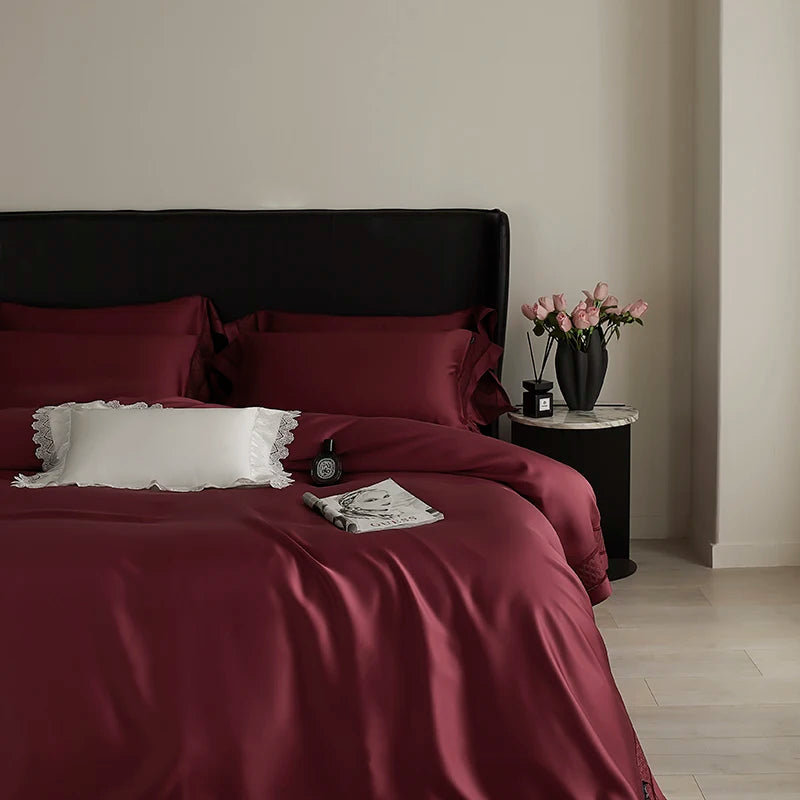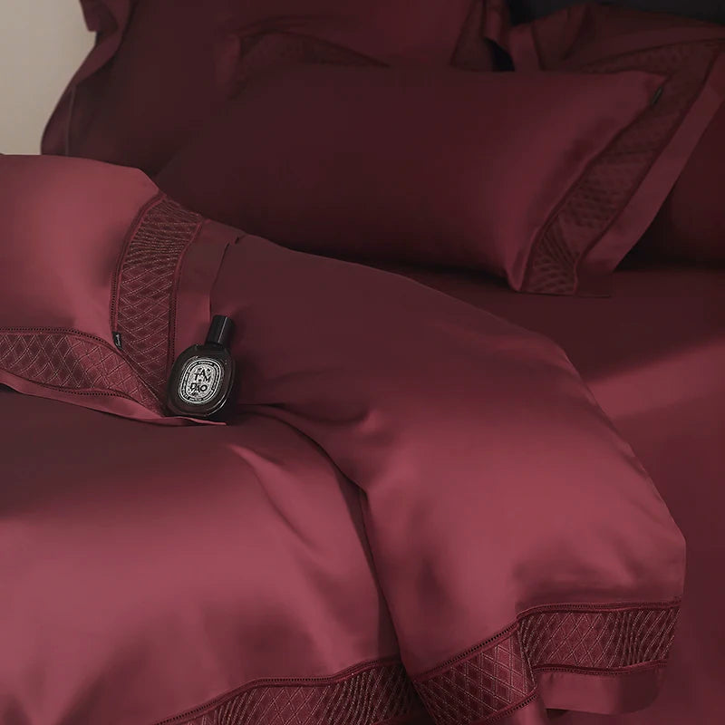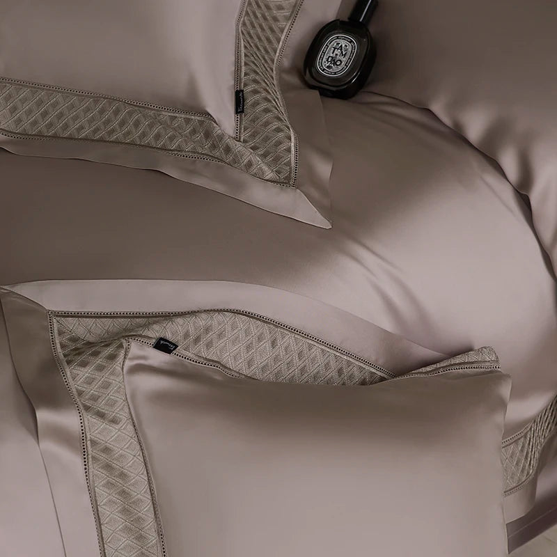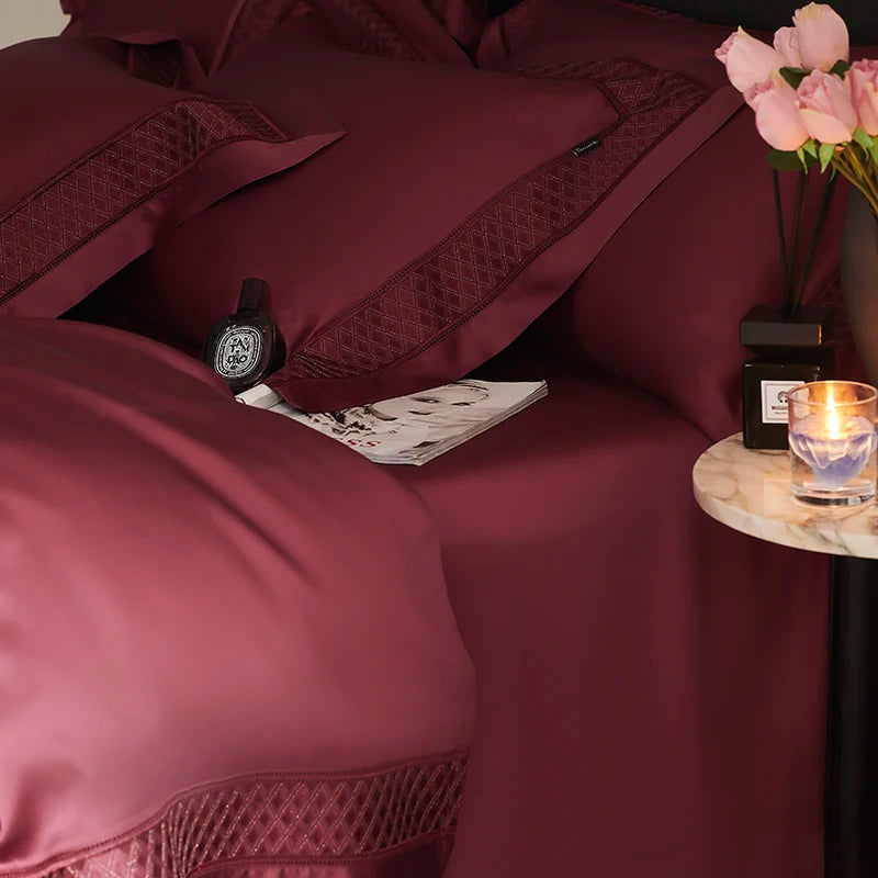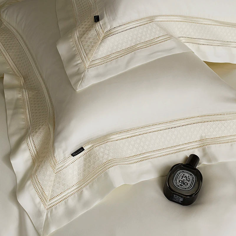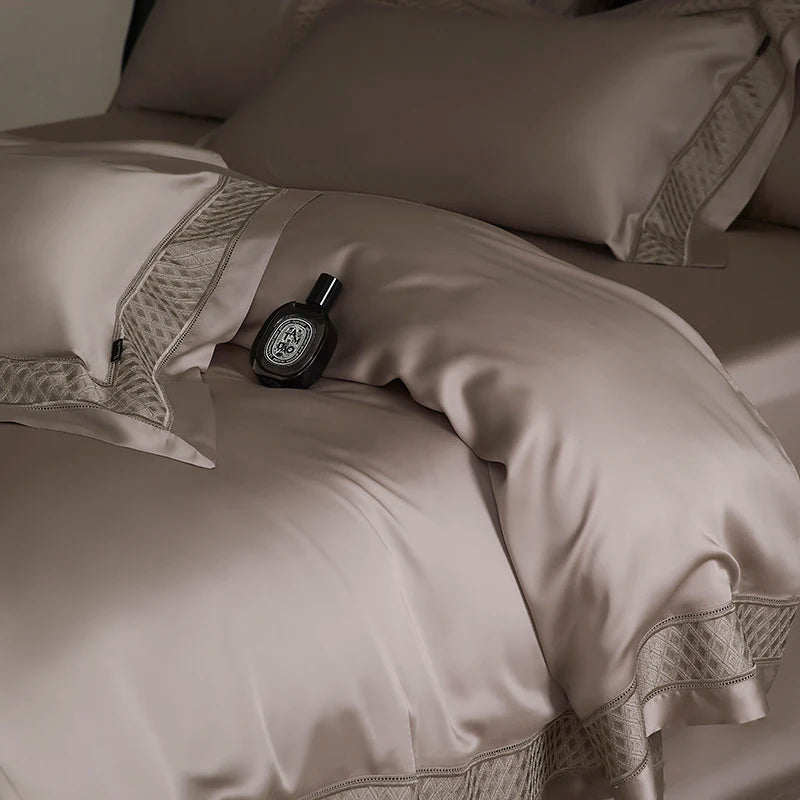 Qfdian 4Pcs Luxury Embroidery 1000TC Lyocell Eucalyptus Fiber Soft Silky Bedding Set Duvet Cover Set Bed Sheet/Fitted Sheet Pillowcases