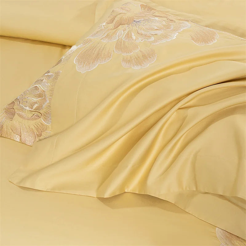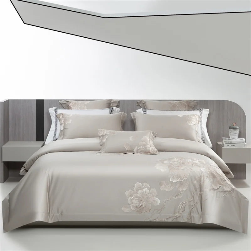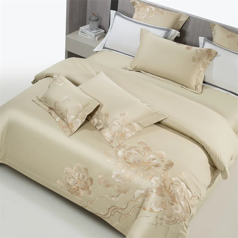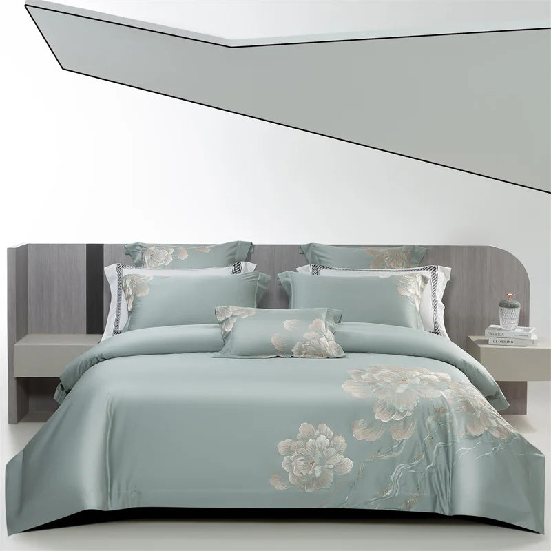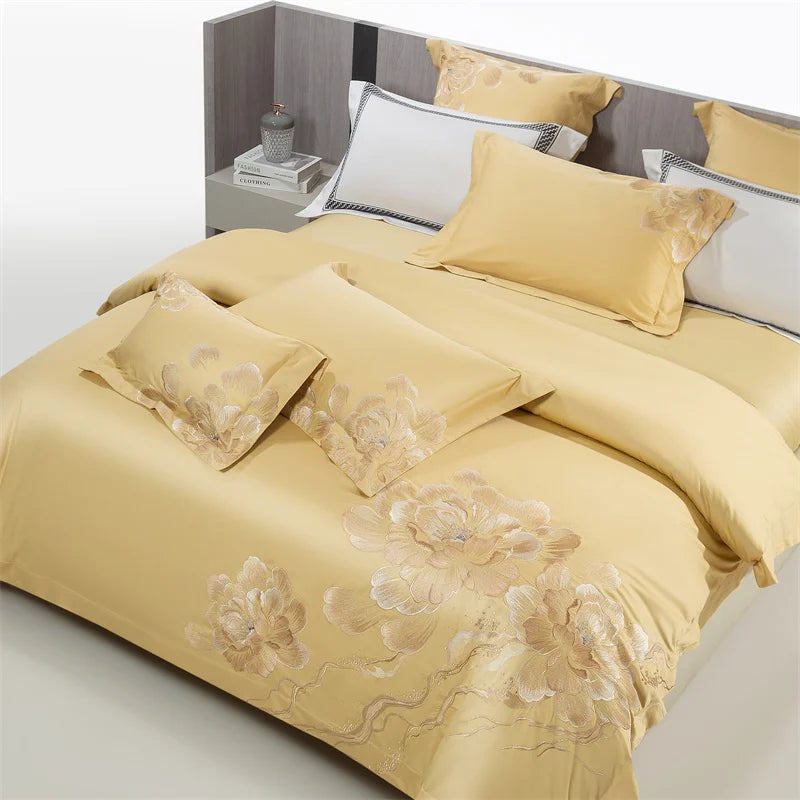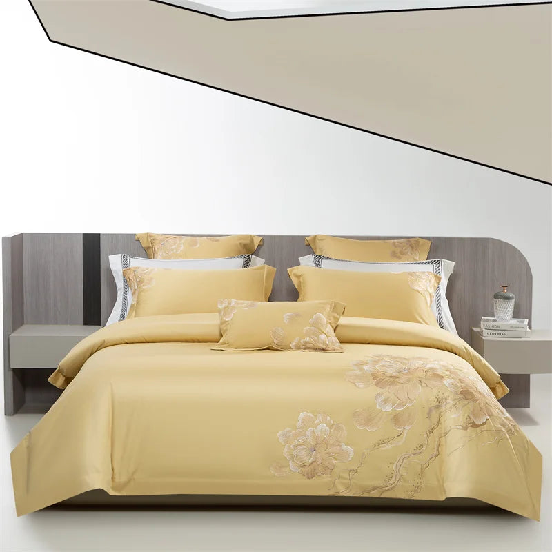 Qfdian 4Pcs Luxury Flowers Embroidery 1400TC Egyptian Cotton Red Wedding Bedding Set Duvet Cover Set Flat/Fitted Bed Sheet Pillowcases