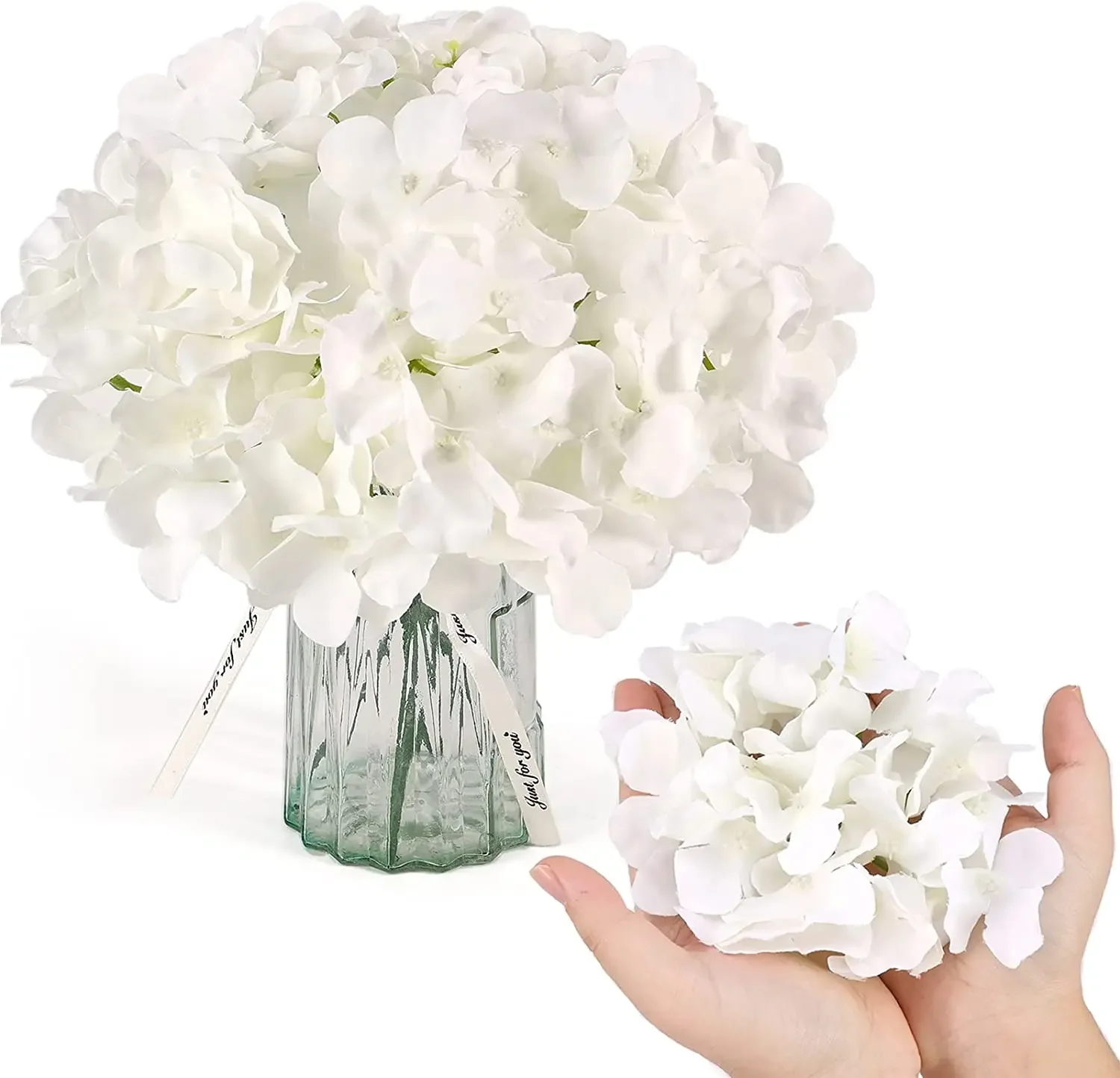 Qfdian 50 PCS Artificial Hydrangea Flowers Silk Hydrangea Heads for Wedding