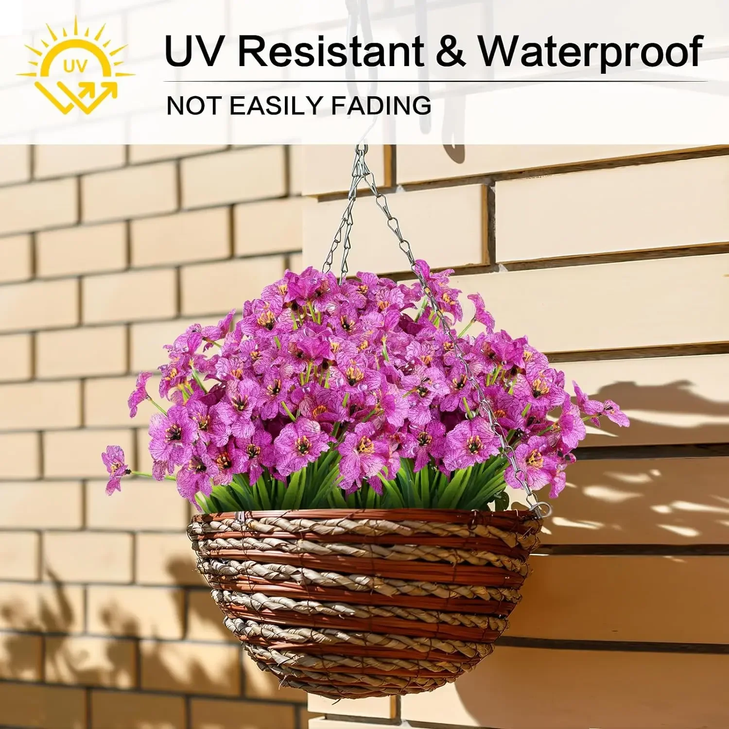 Qfdian 60 Bundles Artificial Flowers for Outdoor No Fade Fake Plastic Outside Flowers Faux Plants for Decoration Hanging Planters