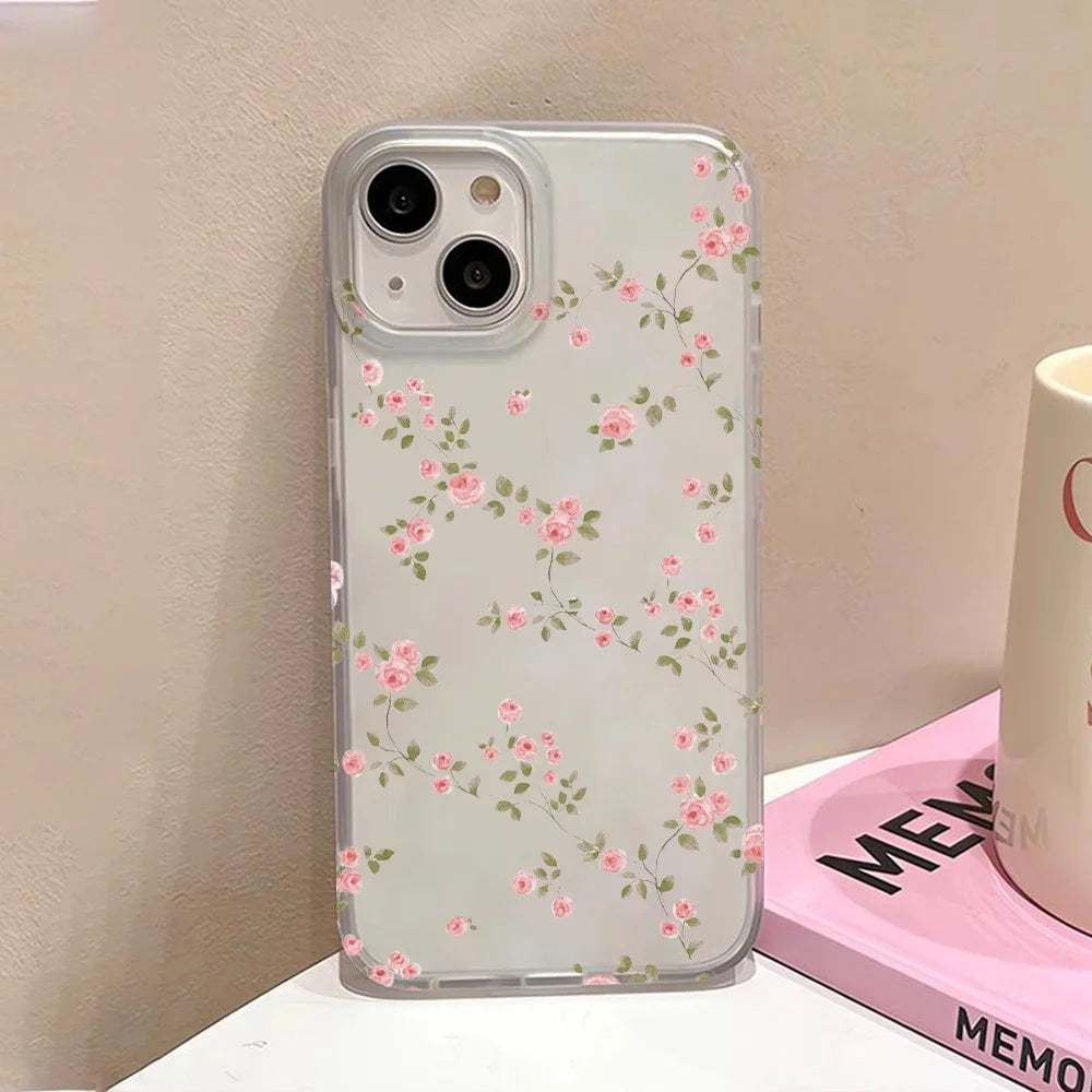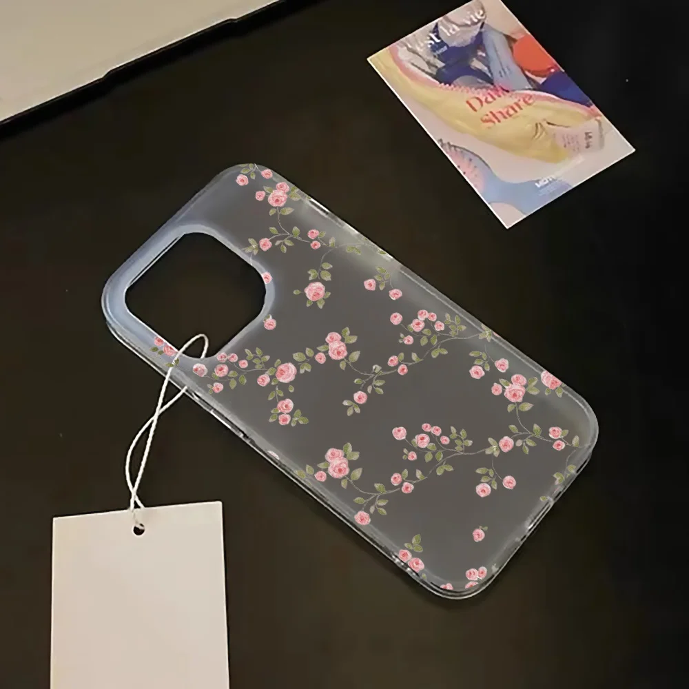 Aesthetic Cute Flower Phone Case For iPhone 14 15 Pro 13 12 16 11 Pro Max Plus 12 Mini Slim Silky Skin Matte Flower Back Cover