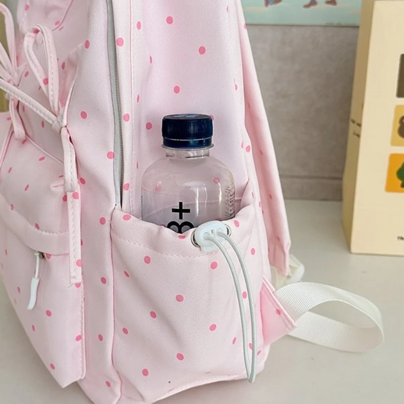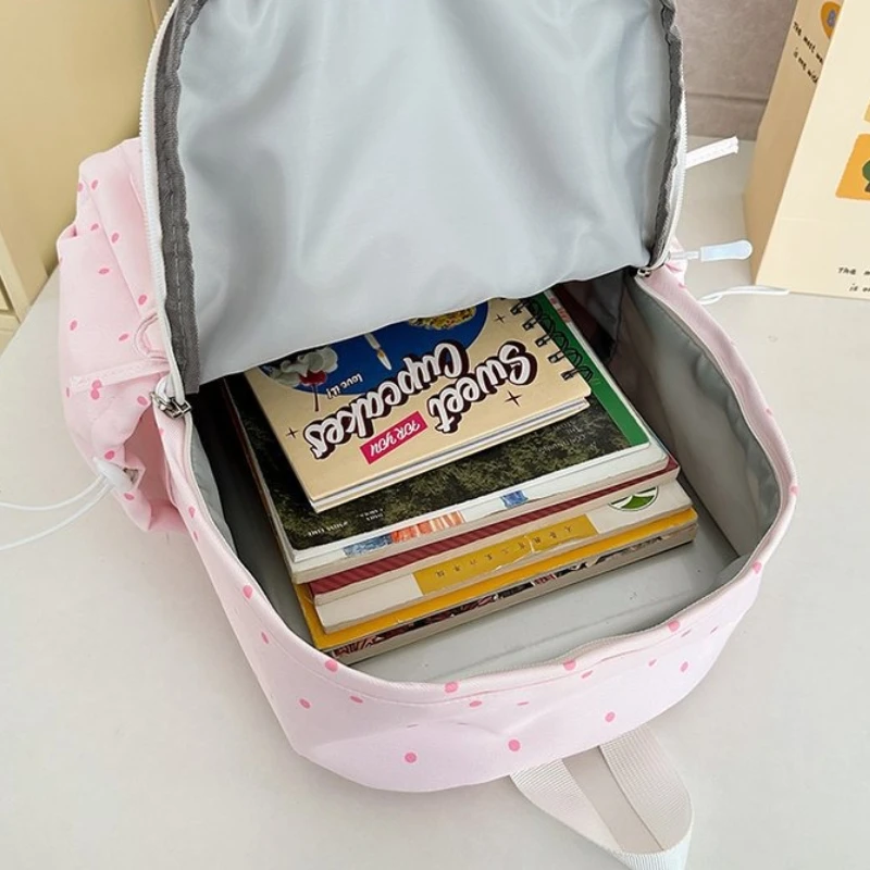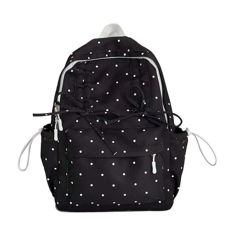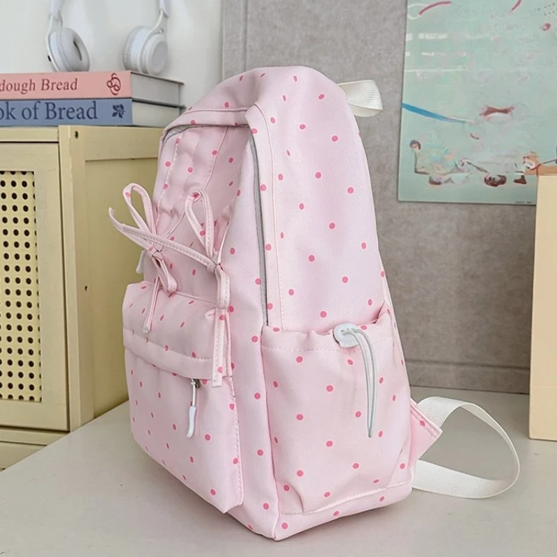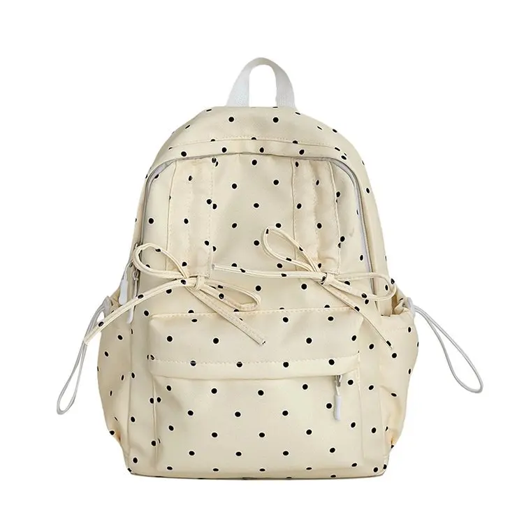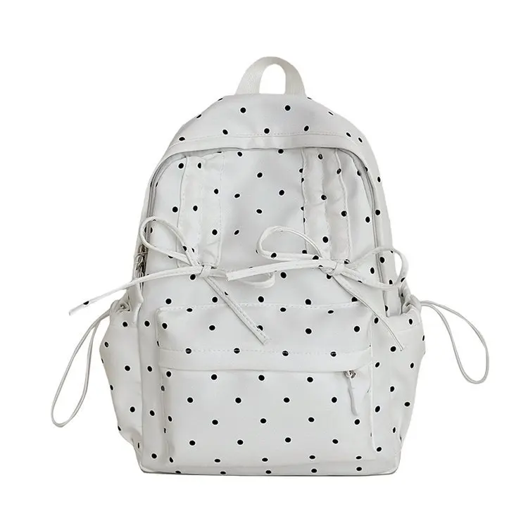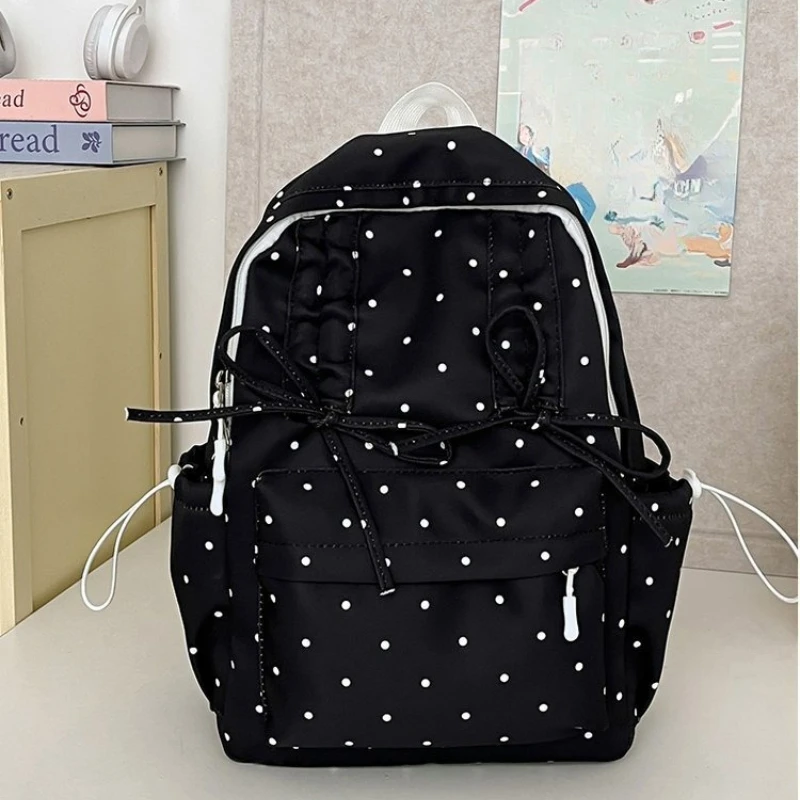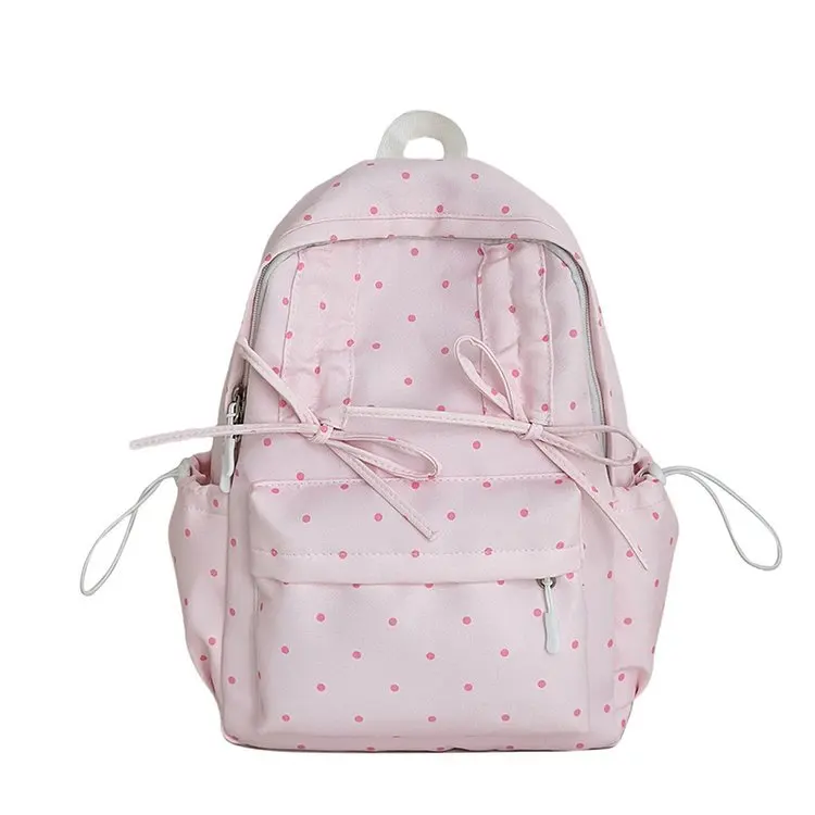 Qfdian Backpacks for Women Students Sweet Dot Chic Bow Schoolbags Y2k Aesthetic Casual Fashion Backpack Trendy Kawaii Girls School Bags