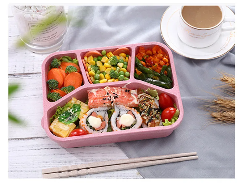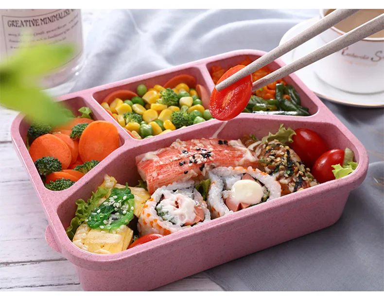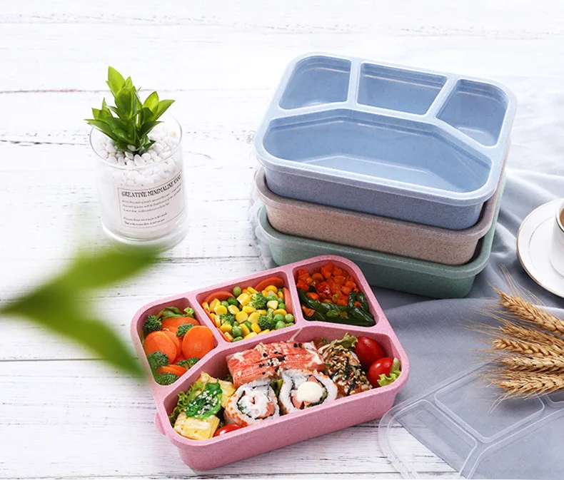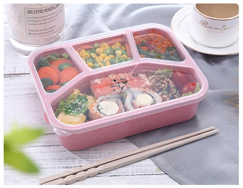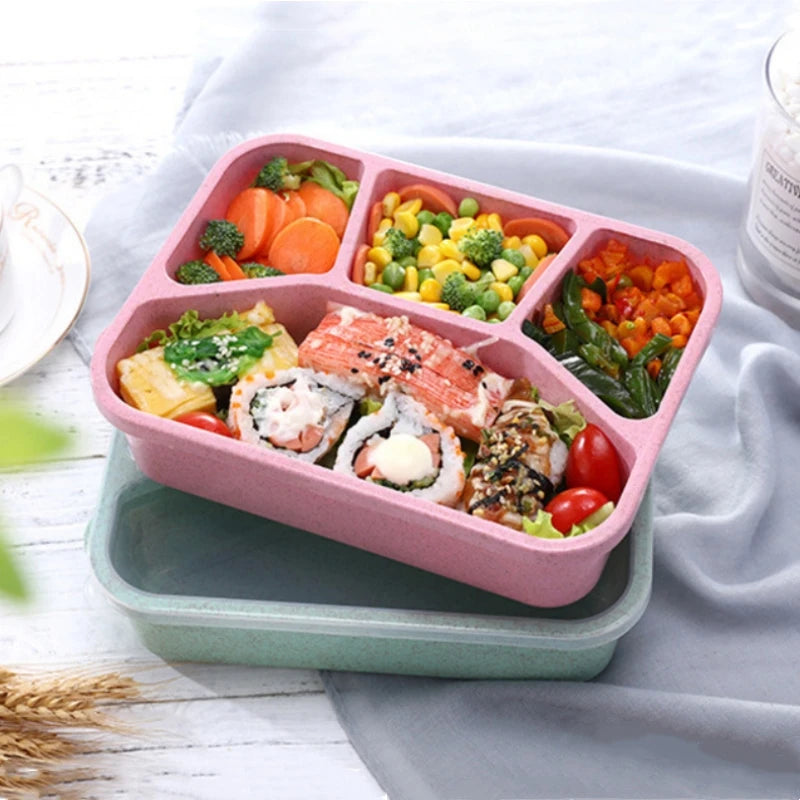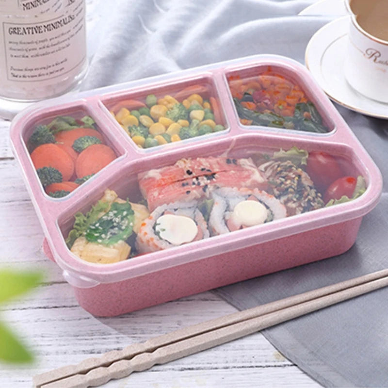 Qfdian Bento Lunch Box 4 Compartment Meal Prep Containers Lunch Box for Aldult Kids Reusable Food Storage Containers Office Schools