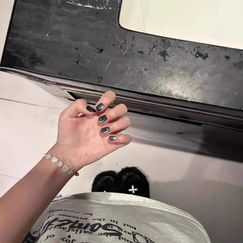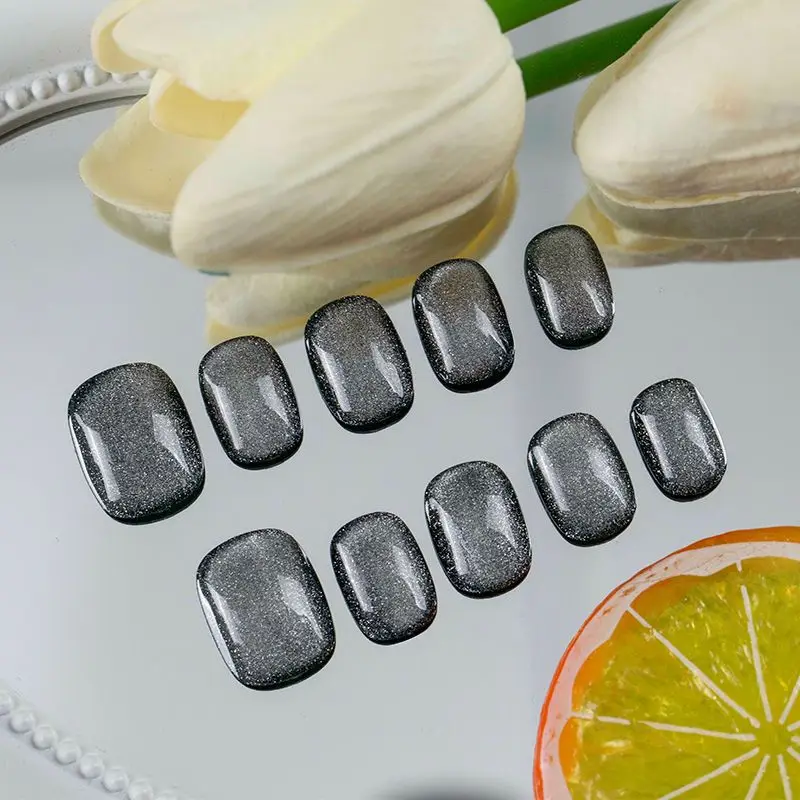 Qfdian Black Cat Eye Handmade Press on Nails Short Round Head Glitter False Nails with Design Wear Finger Tips Manicure Art Fake NailsFeature: High Quality