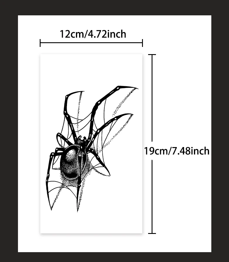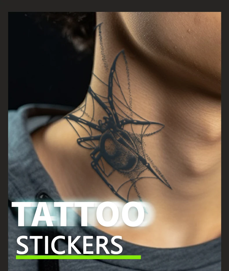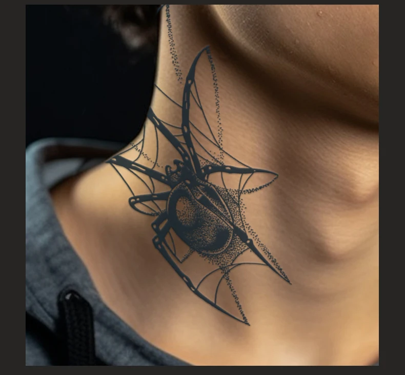 Qfdian Black Spider Temporary Tattoo Stickers Waterproof Long Lasting One Week To Two Weeks,realistic, For Men Neck Arm Chest