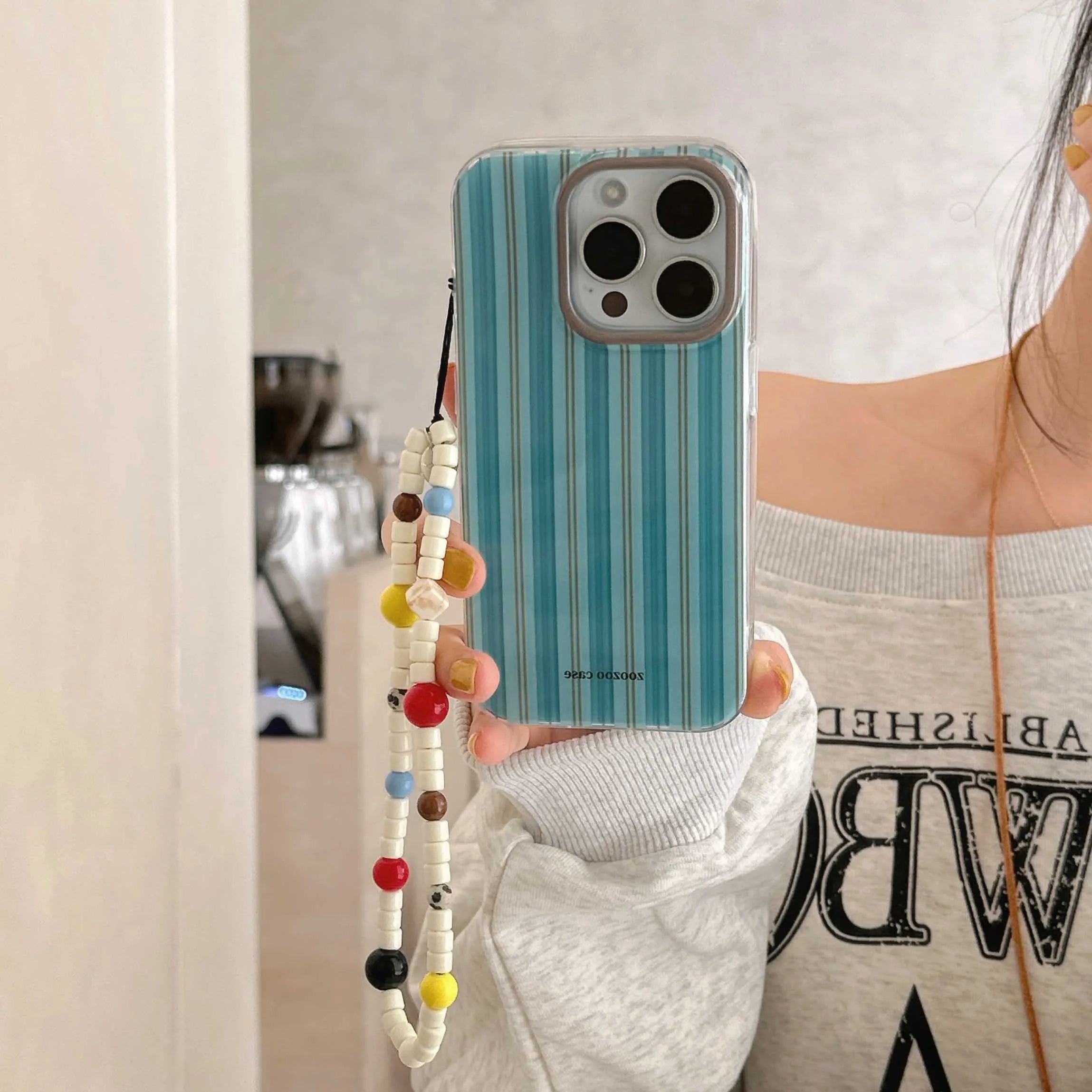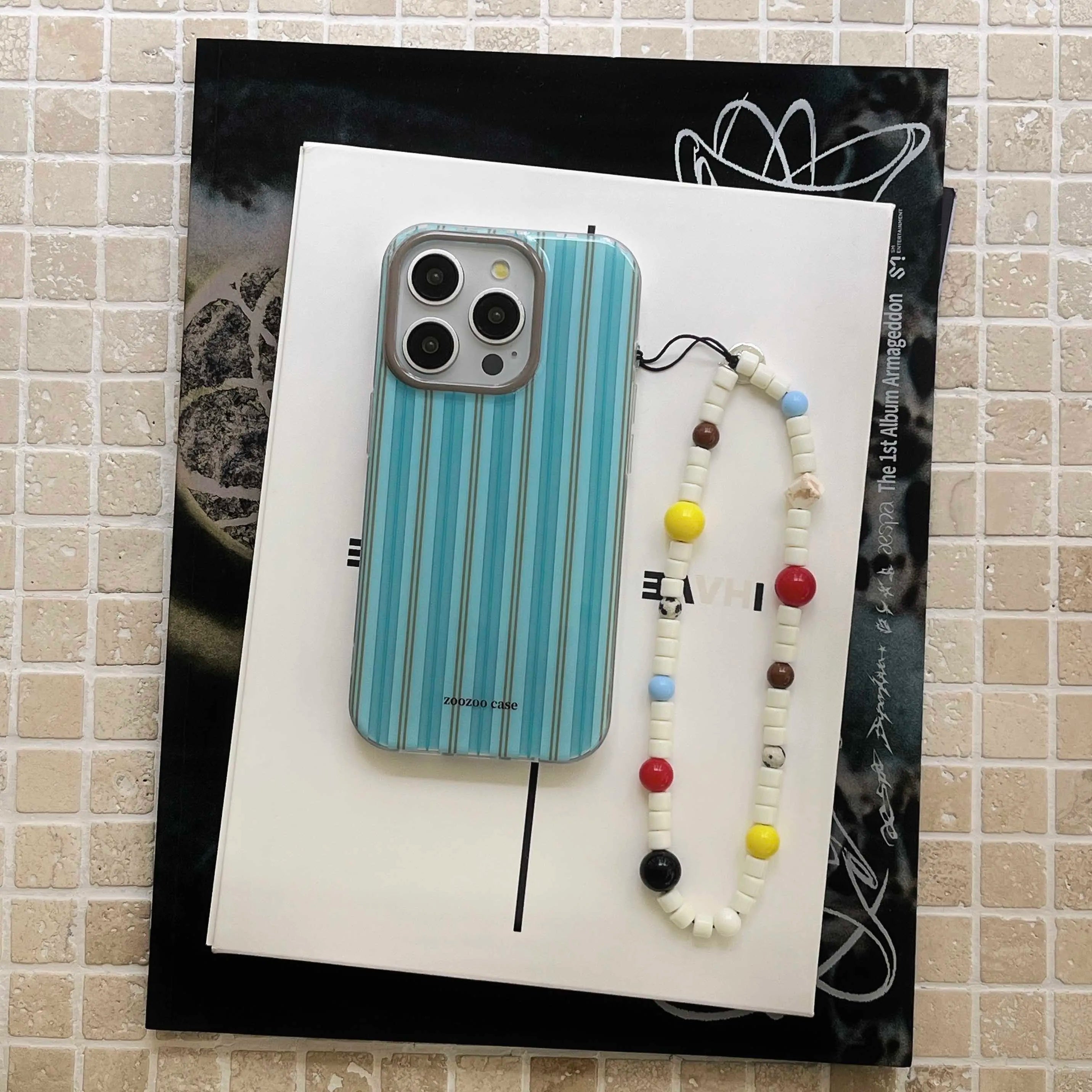 Qfdian Blue stripes summer phone case for iphone 14pro 15pro 12 14 13 15 pro max 15promax 13pro shell colorful chain ins funda cover