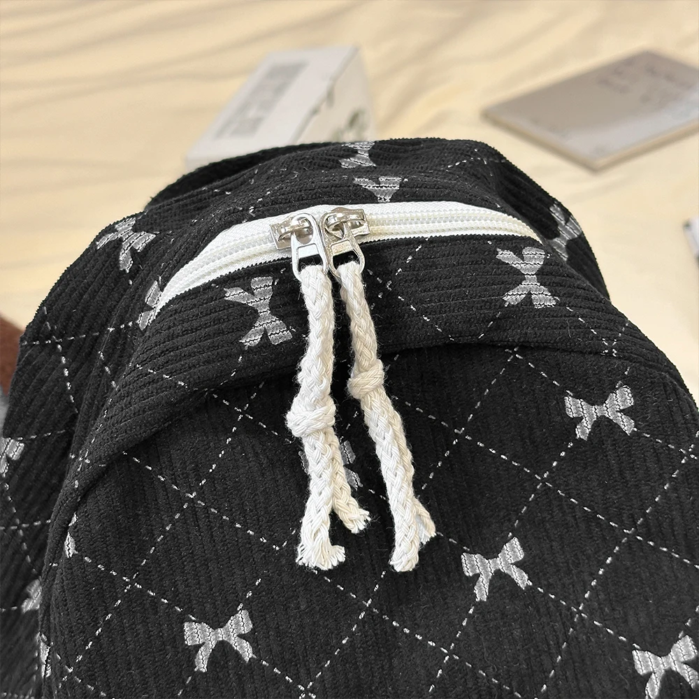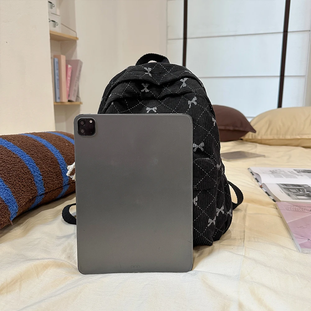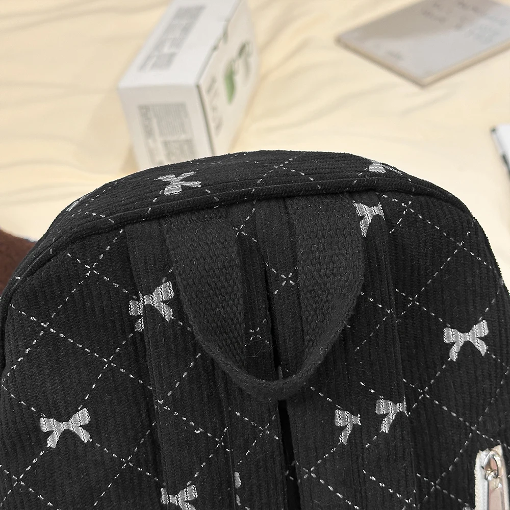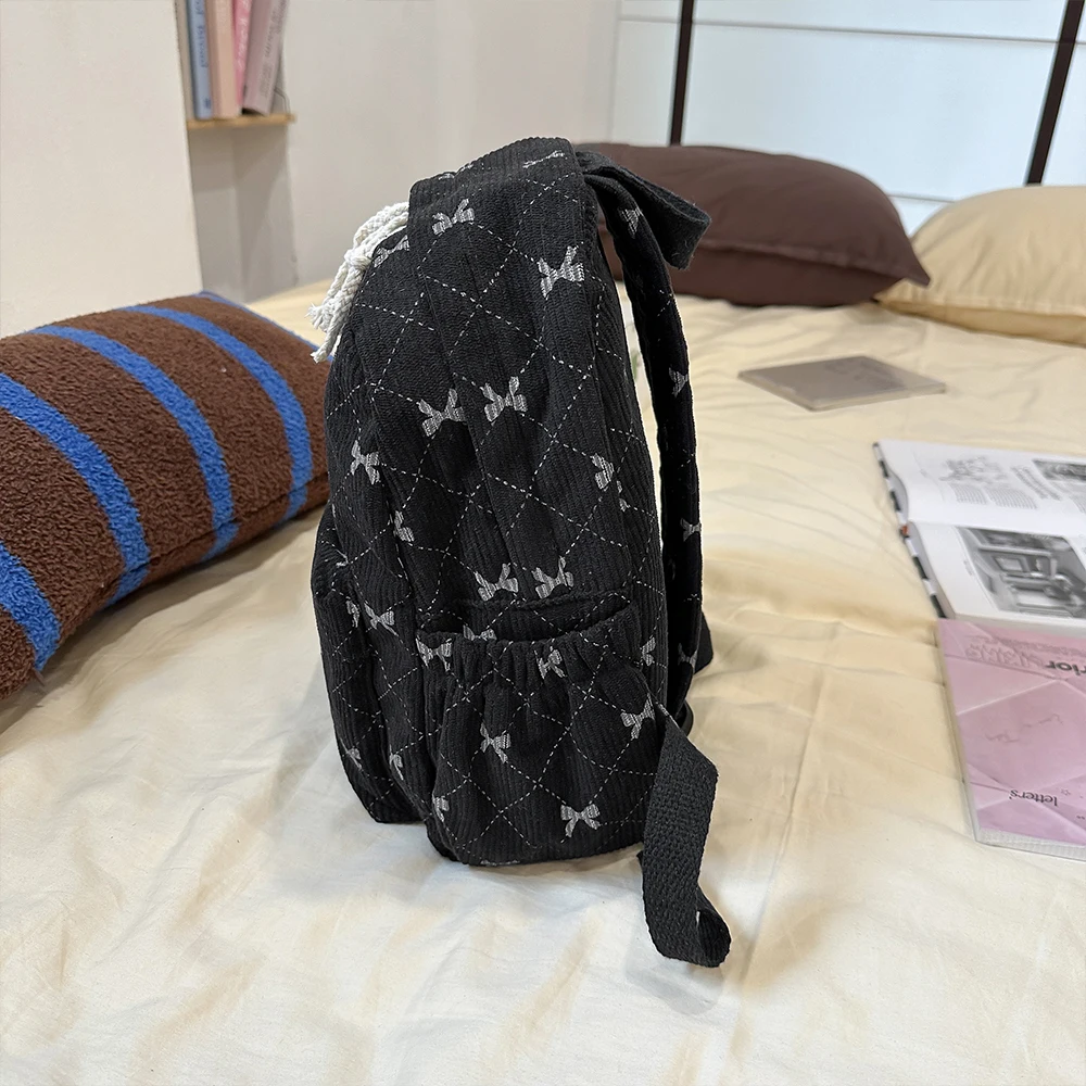 Corduroy small backpack for girls, fashionable and versatile, cute bow tie small backpack, simple backpack
