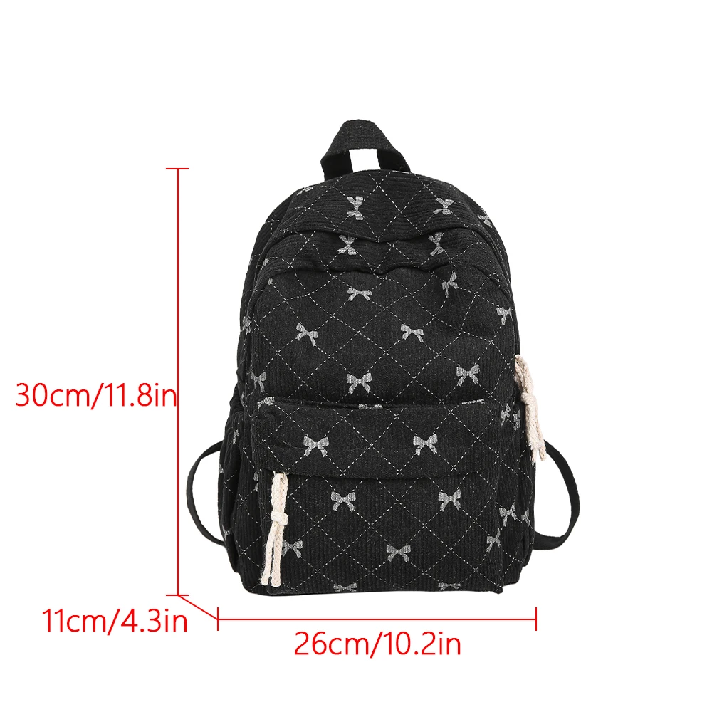Qfdian Corduroy Small Backpack for Girls, Fashionable and Versatile, Cute Bow Tie Small Backpack, Simple Backpack