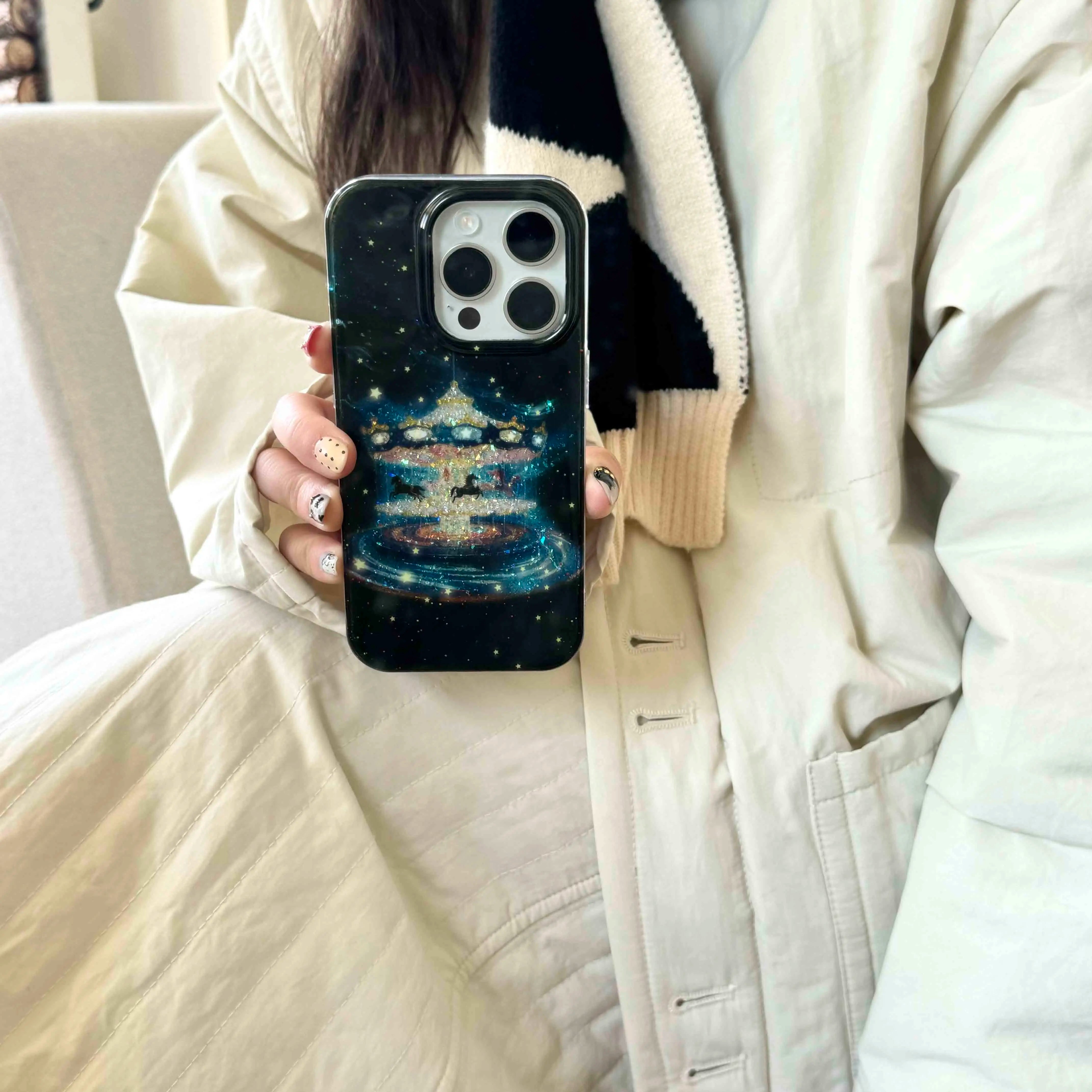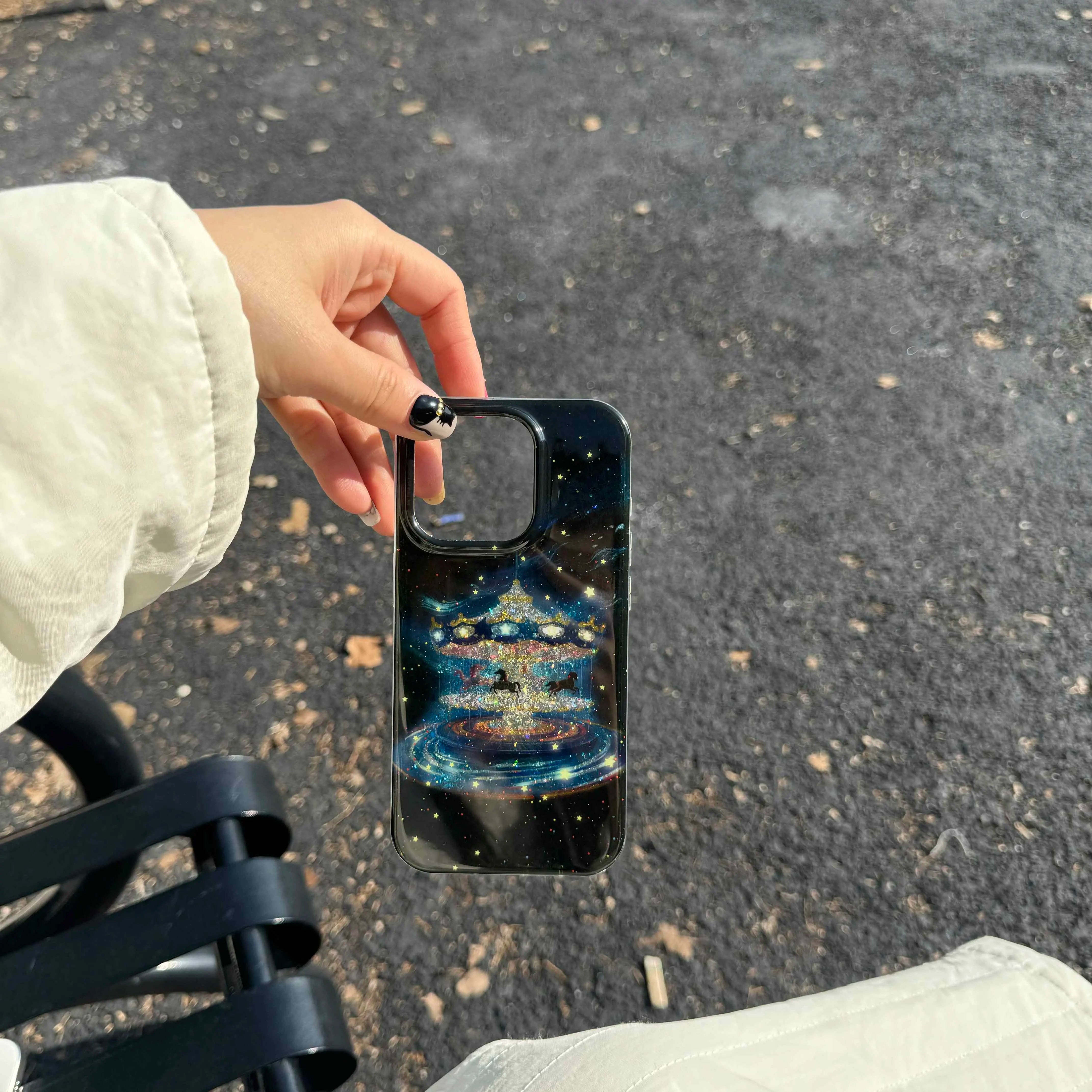 Qfdian Dreamy shiny carrousel phone case for iphone 15pro 13promax 14promax 16 14 13 15 pro max16promax ins protectoro cover shell